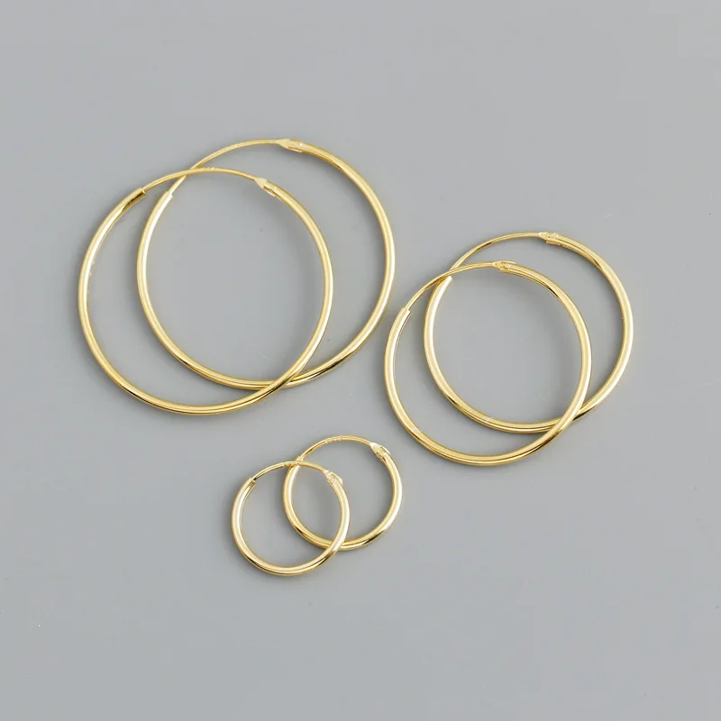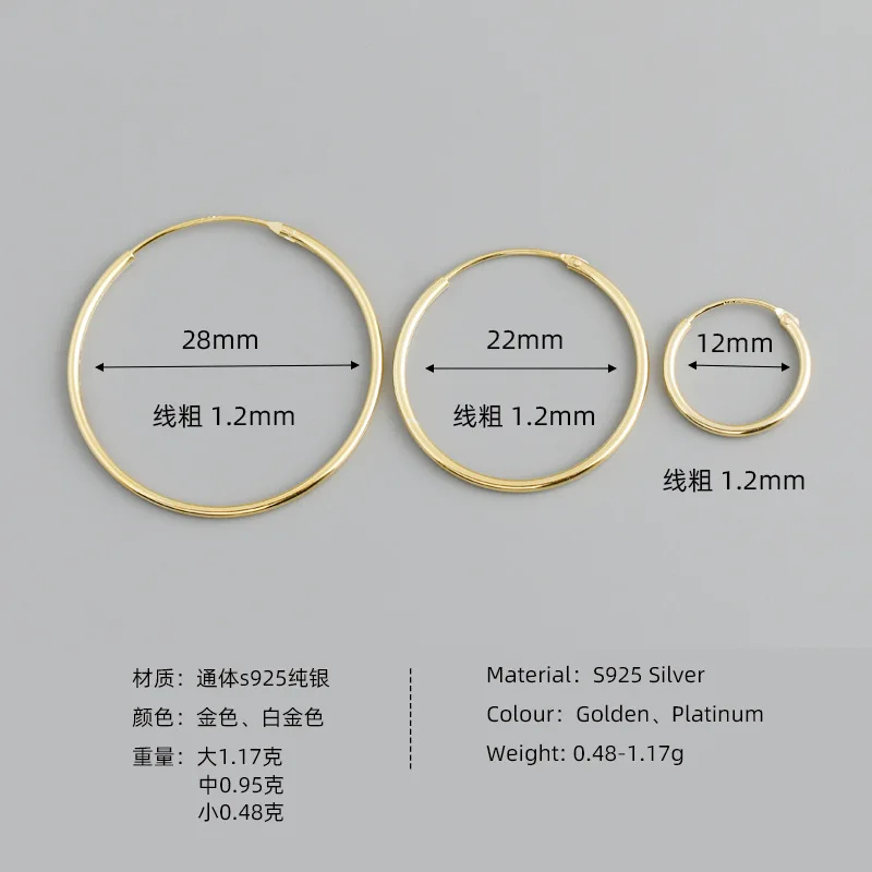 Название изделия: 12 мм/22 мм/28 мм 925 пробы серебряные золотые тонкие серьги-кольца