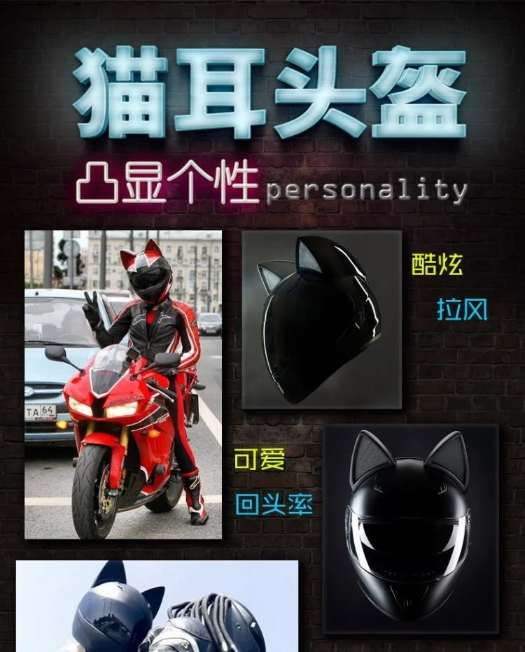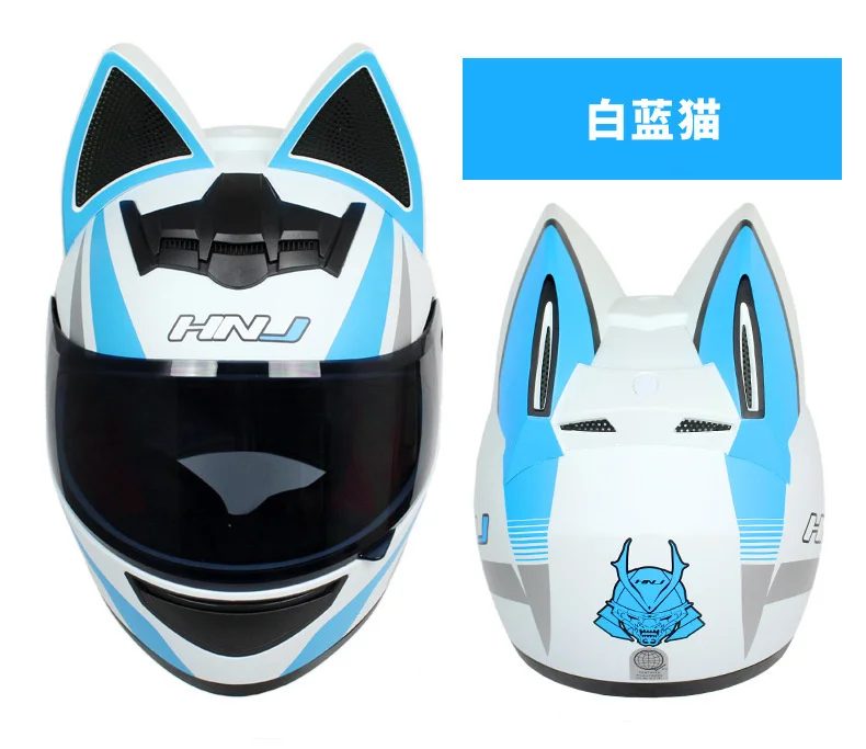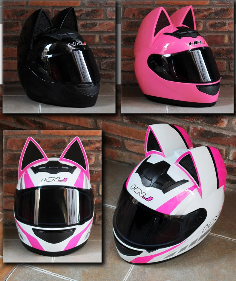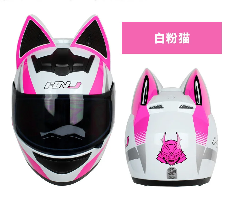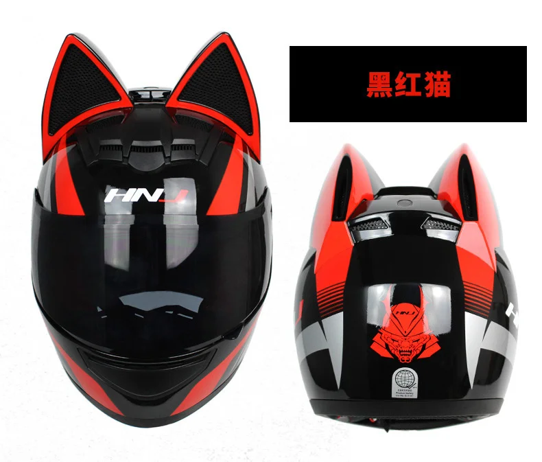 Мотоциклетный шлем HNJ, 2 подарка, мотоциклетный шлем с кошачьими ушками, индивидуальный шлем для мотокросса, велосипедный шлем, для мужчин и женщин