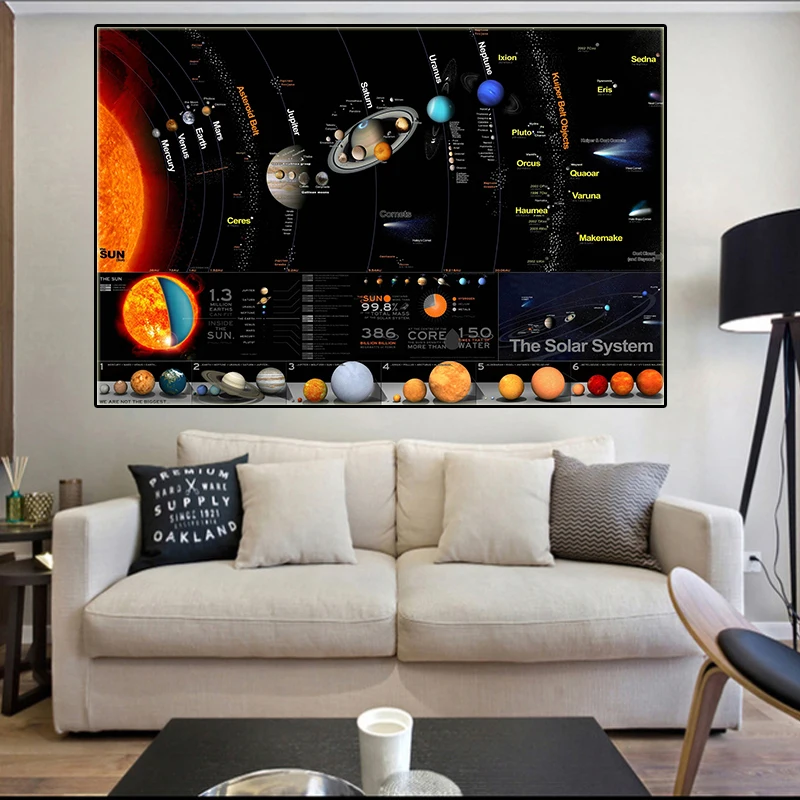 Современная Художественная живопись, карта солнечной системы, холст, живопись, печать, плакаты и принты, домашняя картина для украшения стен