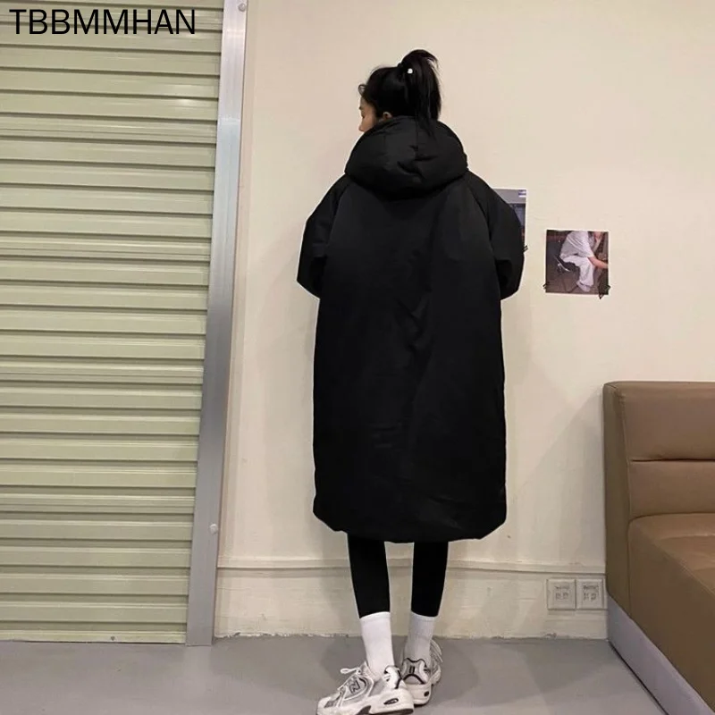 Женская длинная пуховая куртка, свободная хлопковая парка с капюшоном, верхняя одежда в Корейском стиле, зима 2021