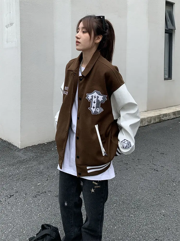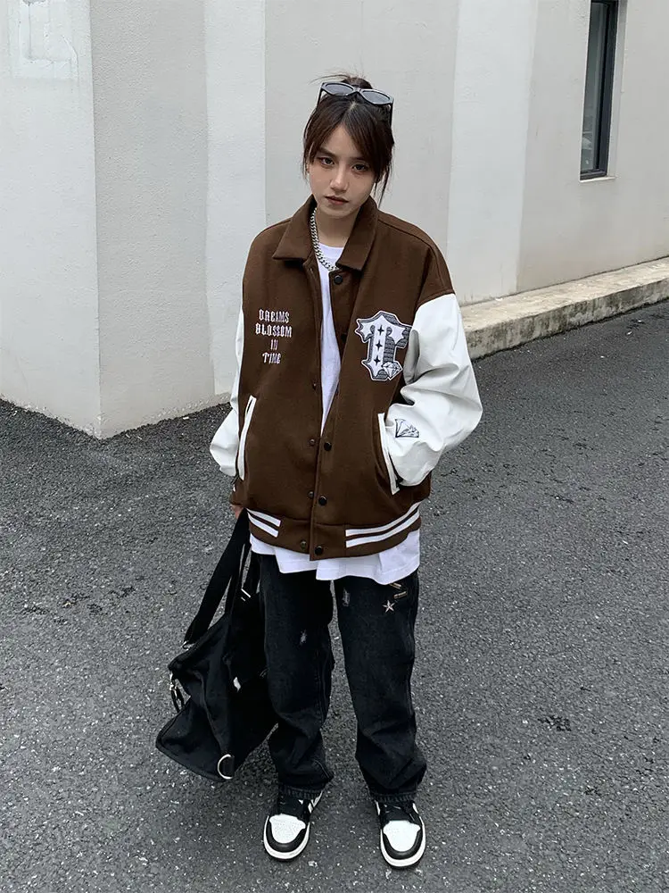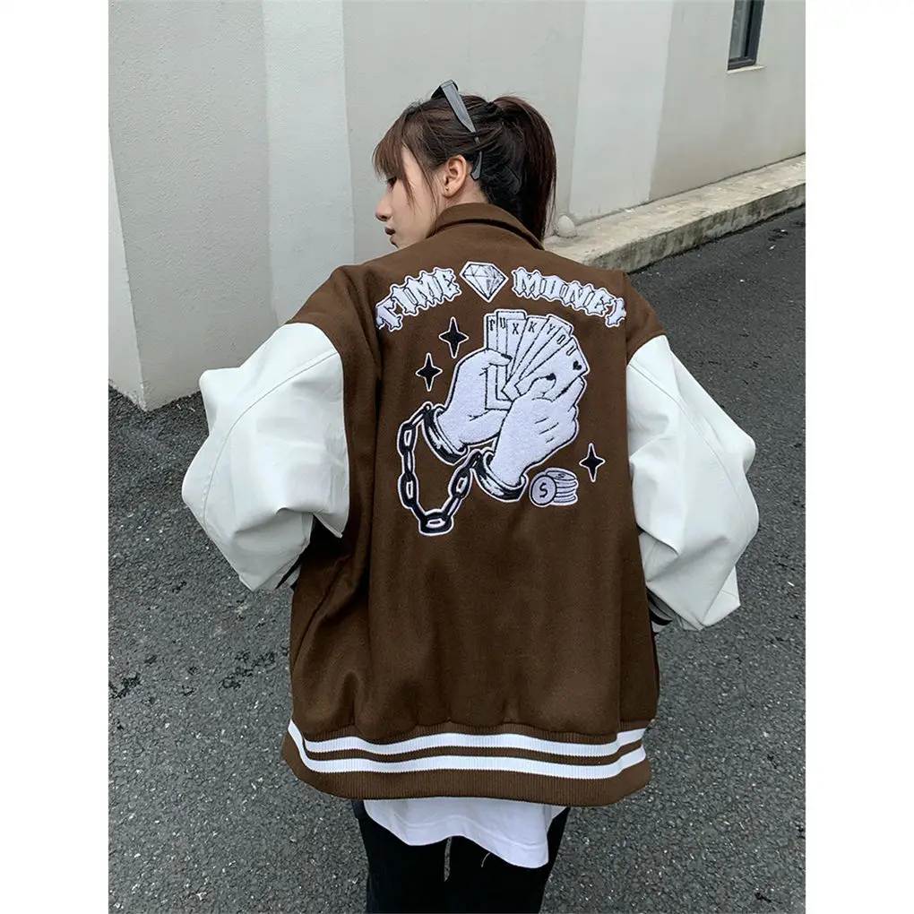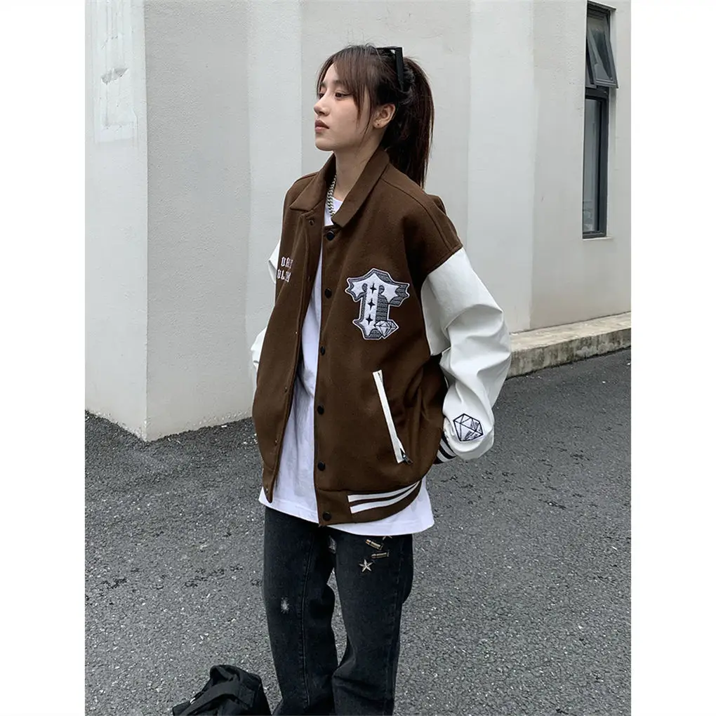 Уличная бейсбольная форма весна-осень, пальто и куртка для женщин, Свободный Топ в стиле хип-хоп, новинка 2021, винтажная кожаная строчка с вышивкой