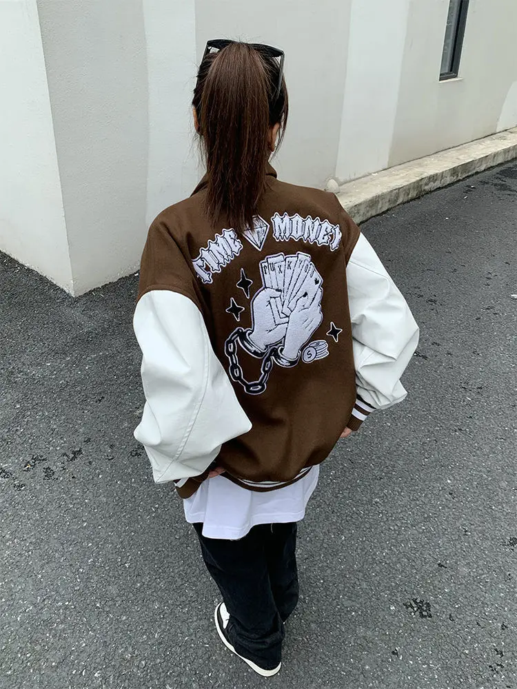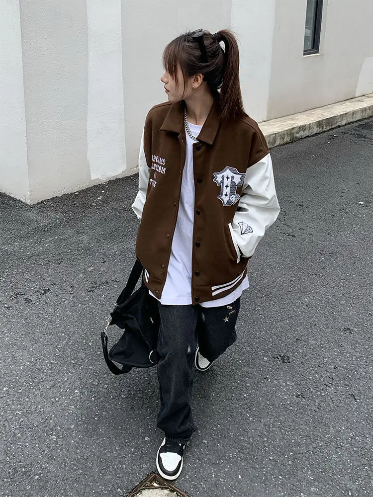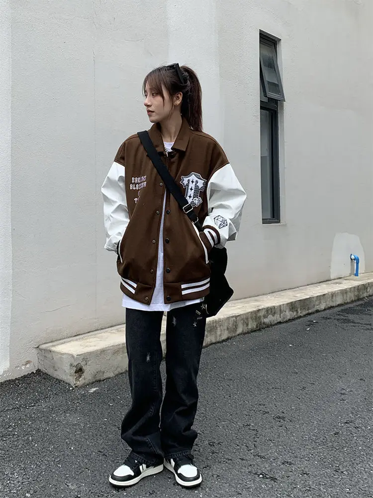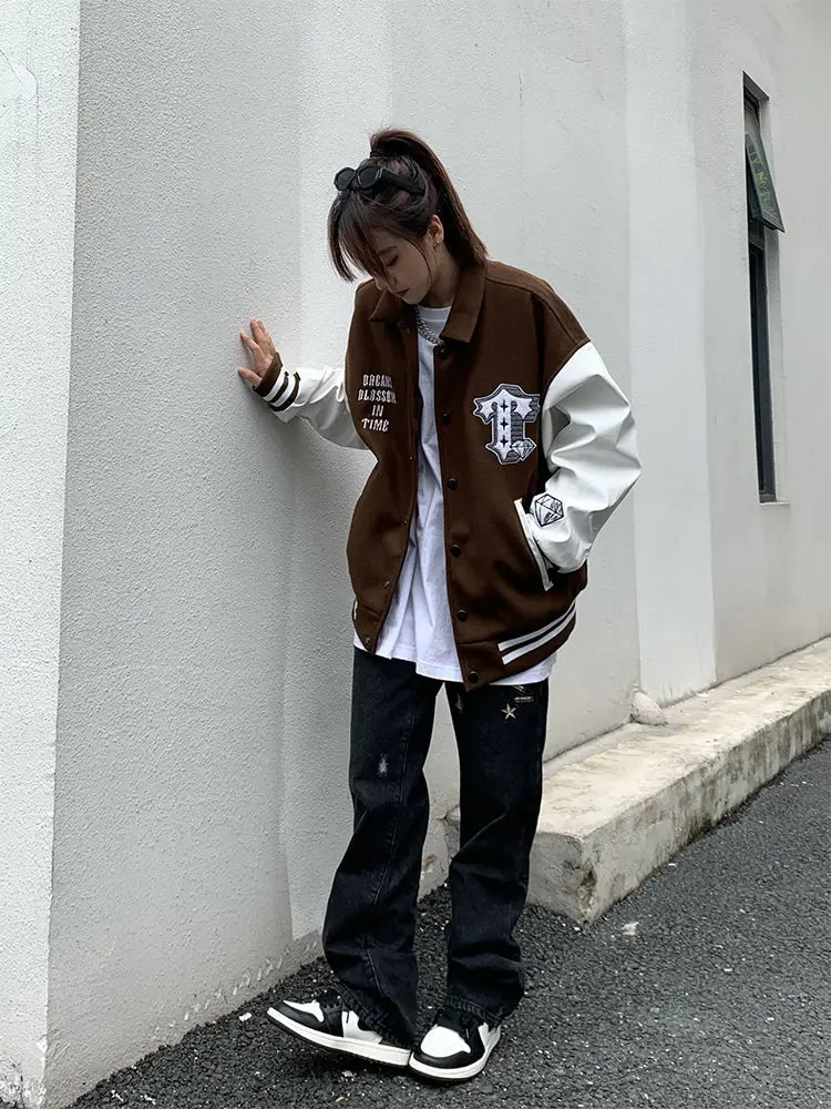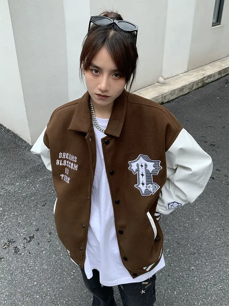 Уличная бейсбольная форма весна-осень, пальто и куртка для женщин, Свободный Топ в стиле хип-хоп, новинка 2021, винтажная кожаная строчка с вышивкой