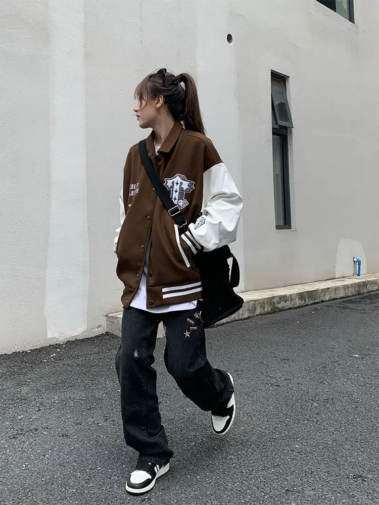 Куртка Женская бейсбольная в стиле хип-хоп, Повседневная Свободная ...