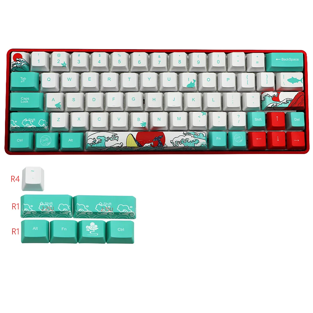 Русский морской Коралл Ukiyo-e Keycap краска Сублимация OEM профиль...