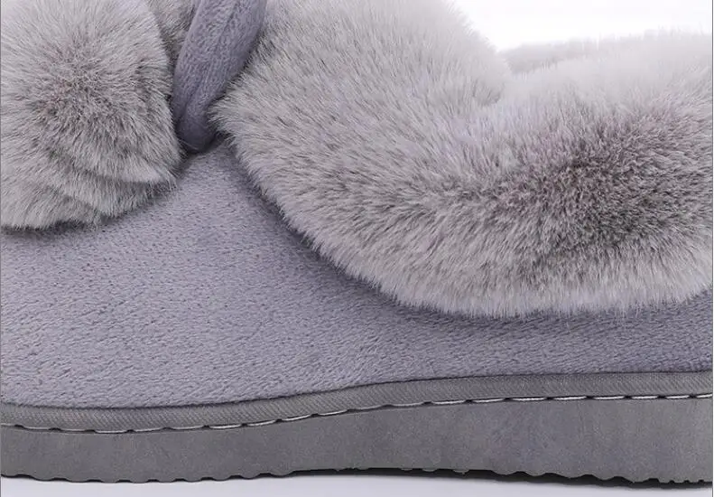 Осень Зимние хлопковые тапочки с кроличьим мехом; Теплая обувь на т...