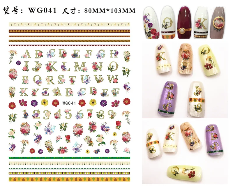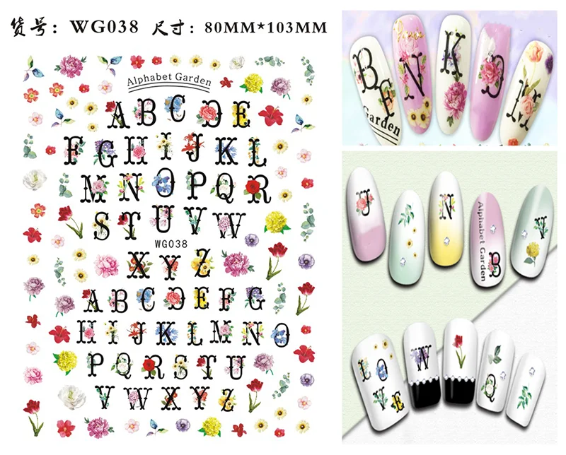 Наклейки для ногтей, буквы алфавита, цветы, винтажные Переводные картинки