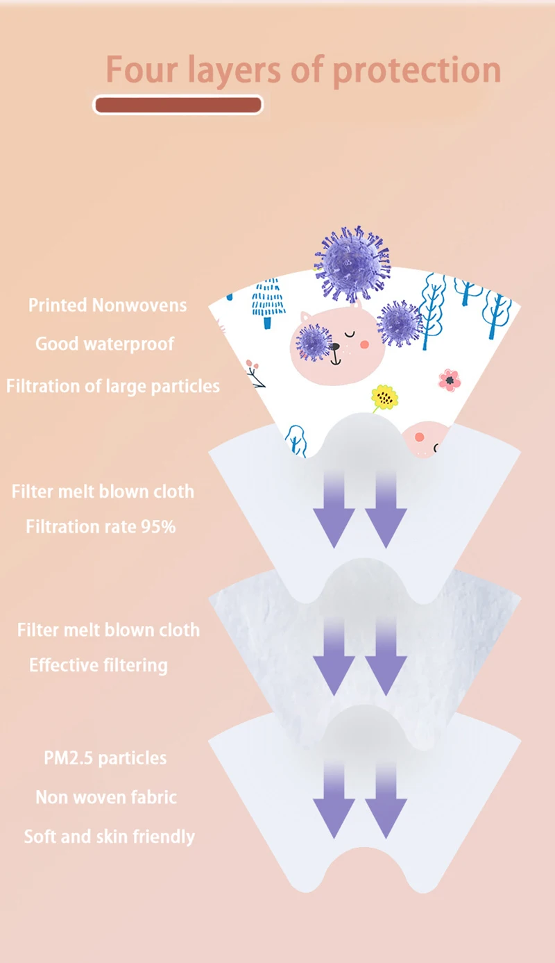 Детская маска FPP2 Нетканая Защитная Пыленепроницаемая дышащая 4-сл...