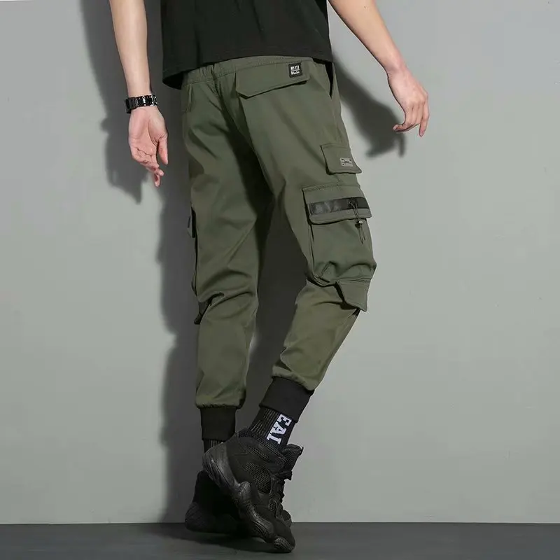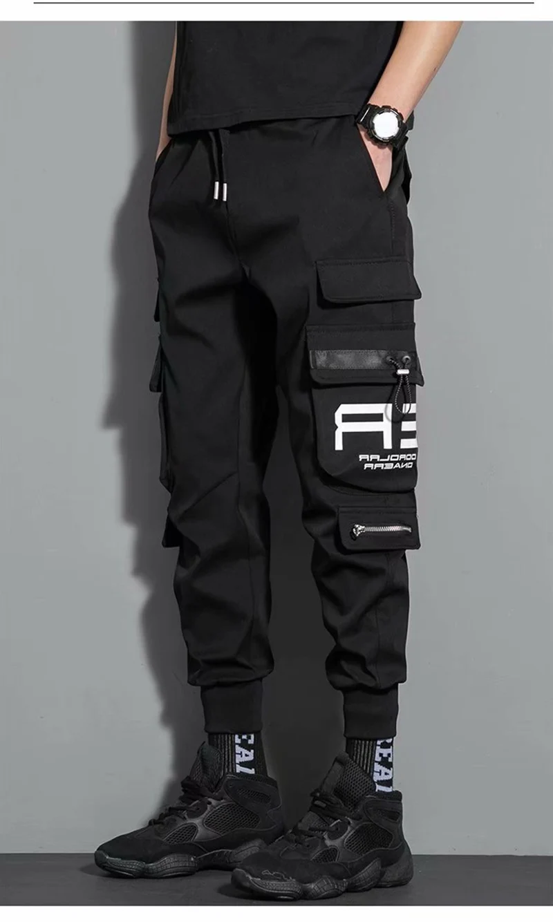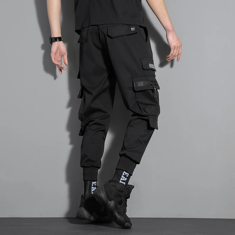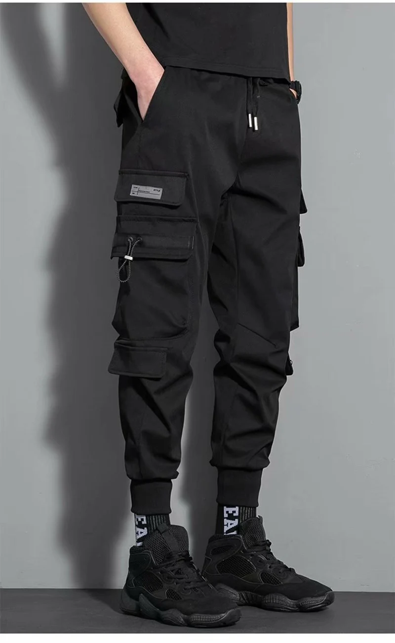 Брюки-карго мужские с несколькими карманами, модные повседневные штаны до щиколотки, с боковыми карманами, джоггеры, уличная одежда, черные, 5XL