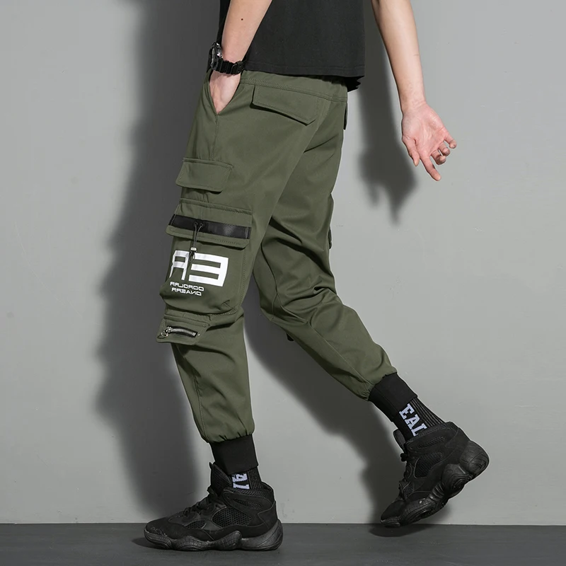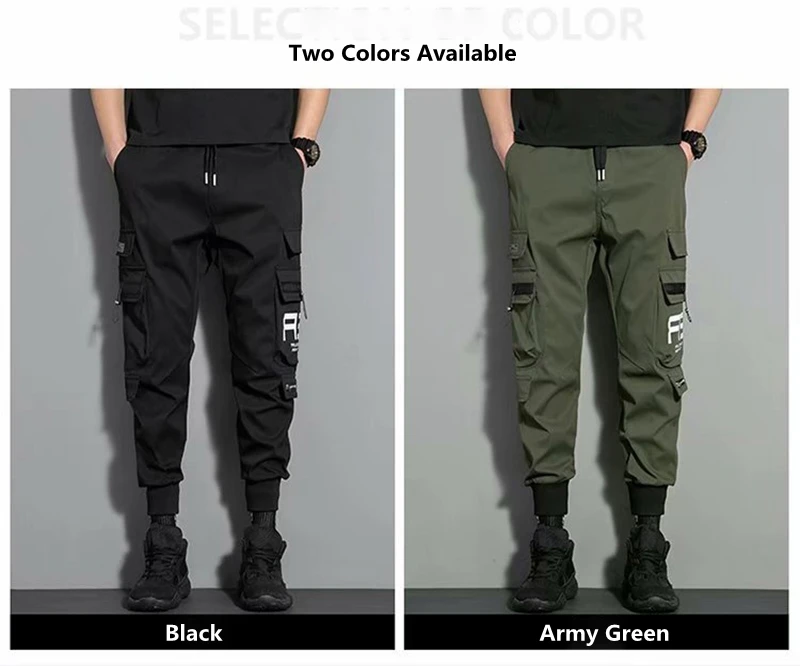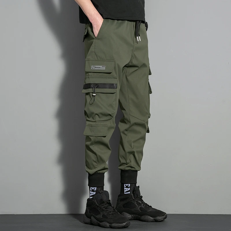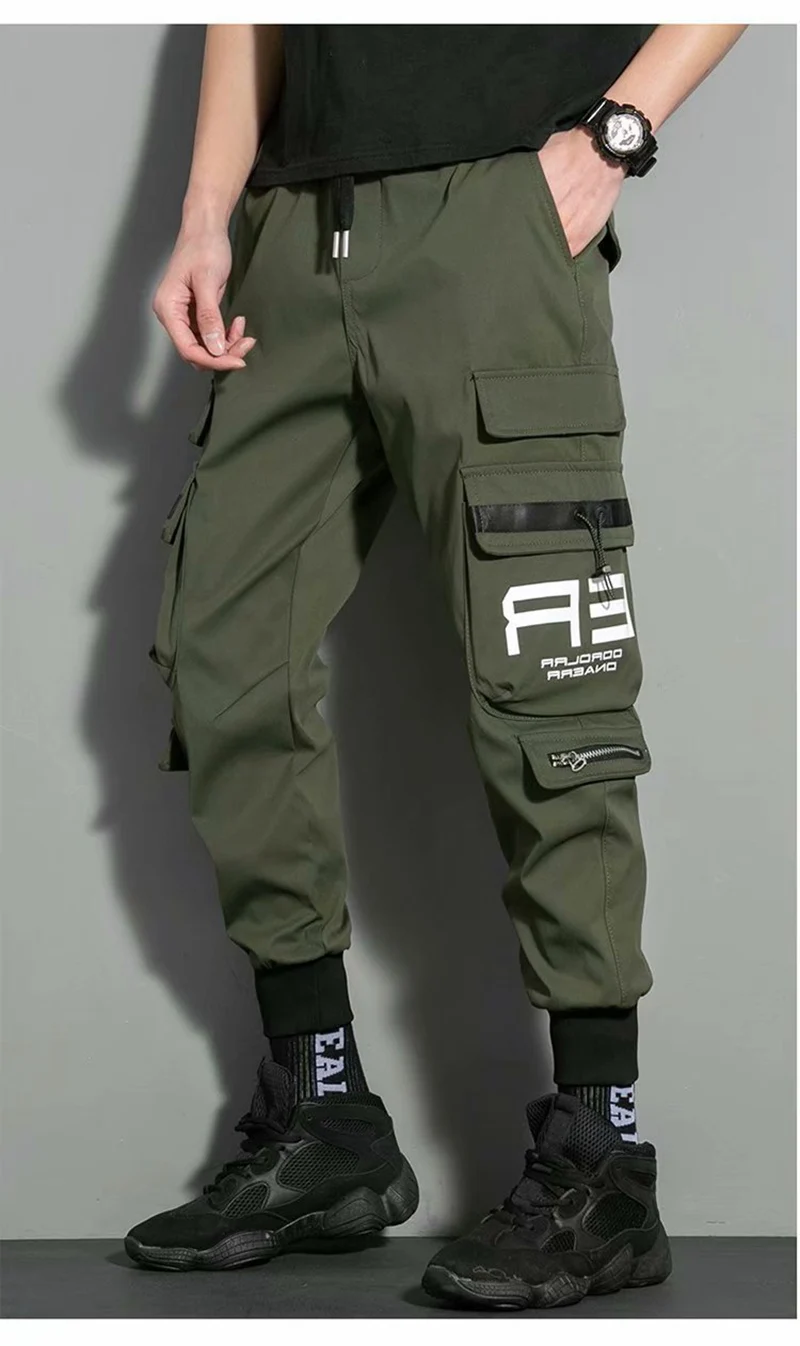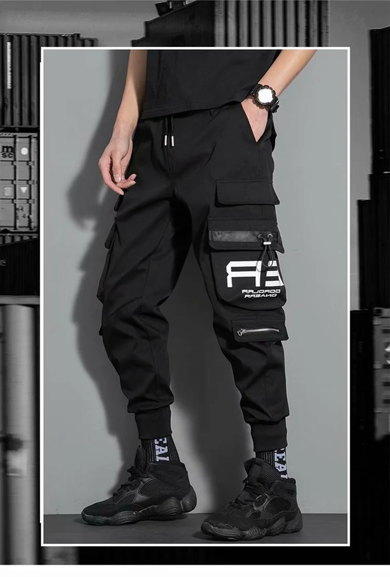 Брюки-карго мужские с несколькими карманами, модные повседневные штаны до щиколотки, с боковыми карманами, джоггеры, уличная одежда, черные, 5XL