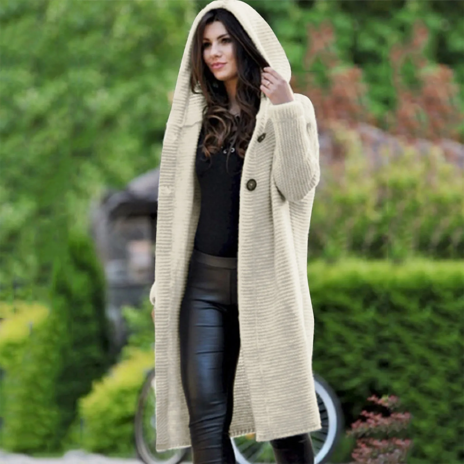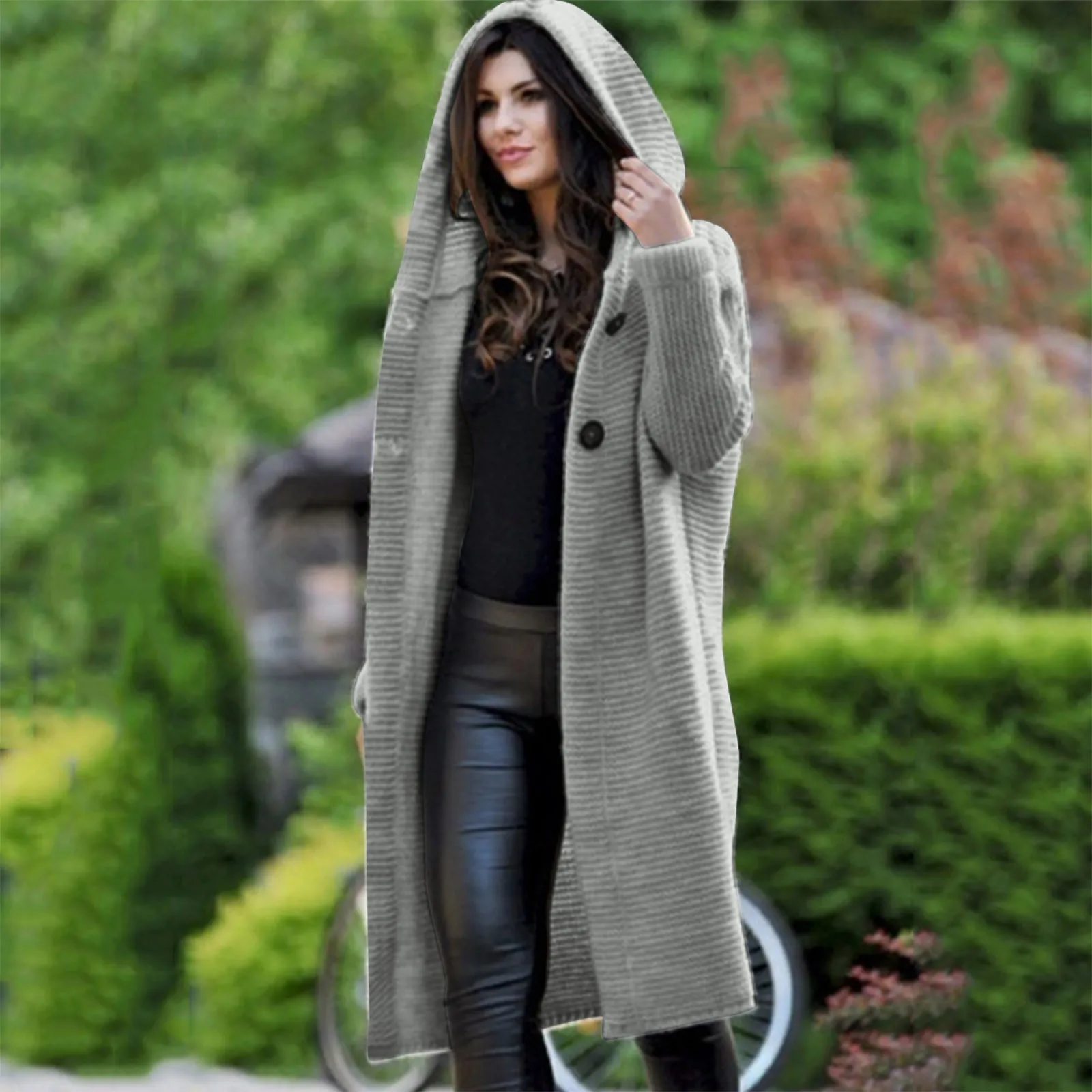 Женский длинный кардиган с капюшоном, Свободный кардиган с цветочным принтом, Осень-зима, #40