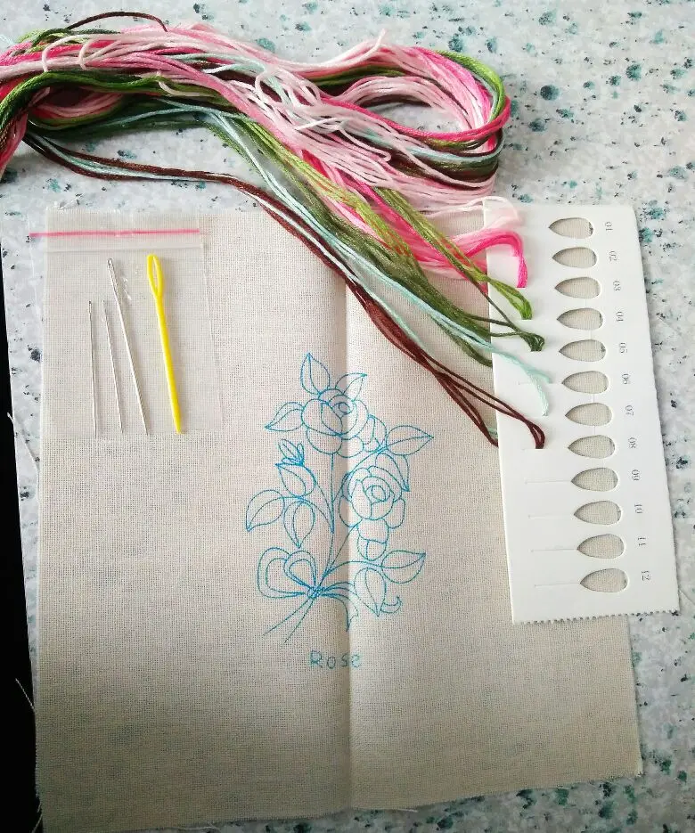 Купила за 188 руб.Доставка али-эконом чуть меньше месяца,на почту.Нам понравилось!❤Очень милая розочка!В набор входит:2 рисунка розы(один на ткани),4 иглы,нитки мулине,инструкция на английском (там можно рассмотреть процесс вышивки).Пялец в наборе нет.Продавец положил в подарочек стержень (пишет,как фломастер).