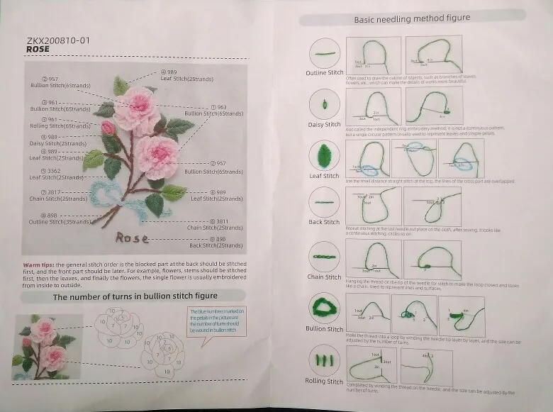Набор инструментов для вышивки цветными цветами и растениями для начинающих