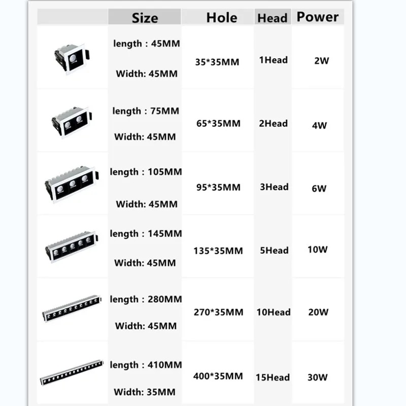 Tensão de entrada: ac85-ac110/220v 50/60hzPotência: 2 Вт; 4 Вт; 6 Вт; 10 Вт; 20 Вт; 30 ВтДимеризавель: НАОВнешний вид (cri):> ra92Ângulo de feixe: 24 °Чип de led: чип cob (cree)Fluxo luminoso: 95 ~ 110 лм/ВтТемпература:-25 a 45 °Temperatura de cor: branco quente :( 2700k-3000k); branco natural :( 4000k-4200k); branco frio :( 6000k-6500k)Вид: 50000 80000 horasGarantia: 5 anosМатериал: lente de aluminio fundidoОригем: Гуандун (Китай)