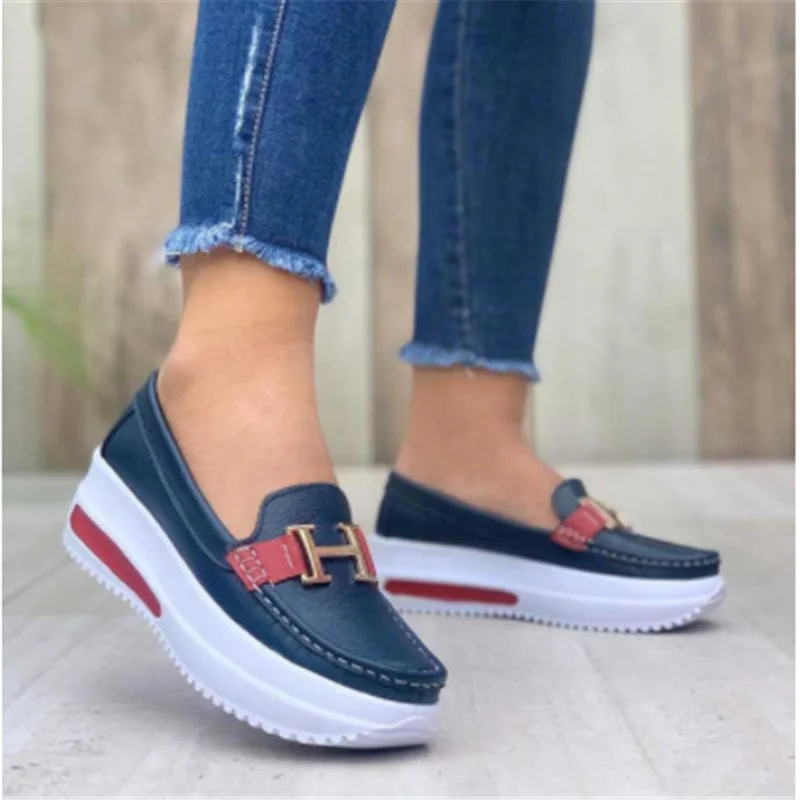 Новинка осени 2021, однотонные женские туфли на толстой подошве, с ...