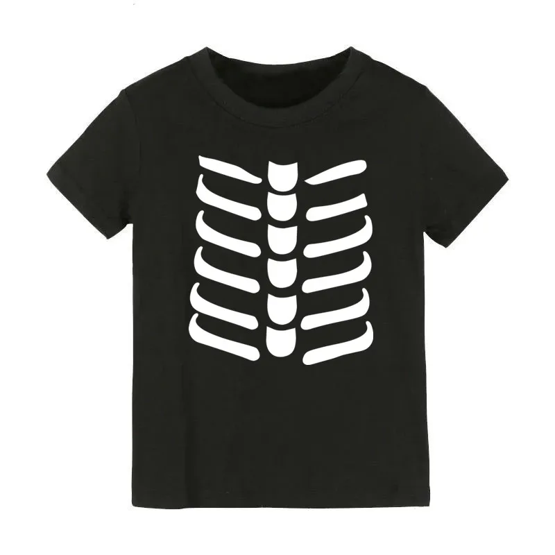 Детский костюм на Хэллоуин, черные футболки с 3d принтом скелета, хлопковая Повседневная футболка с круглым вырезом, детская одежда от 2 до 10 лет, 2021