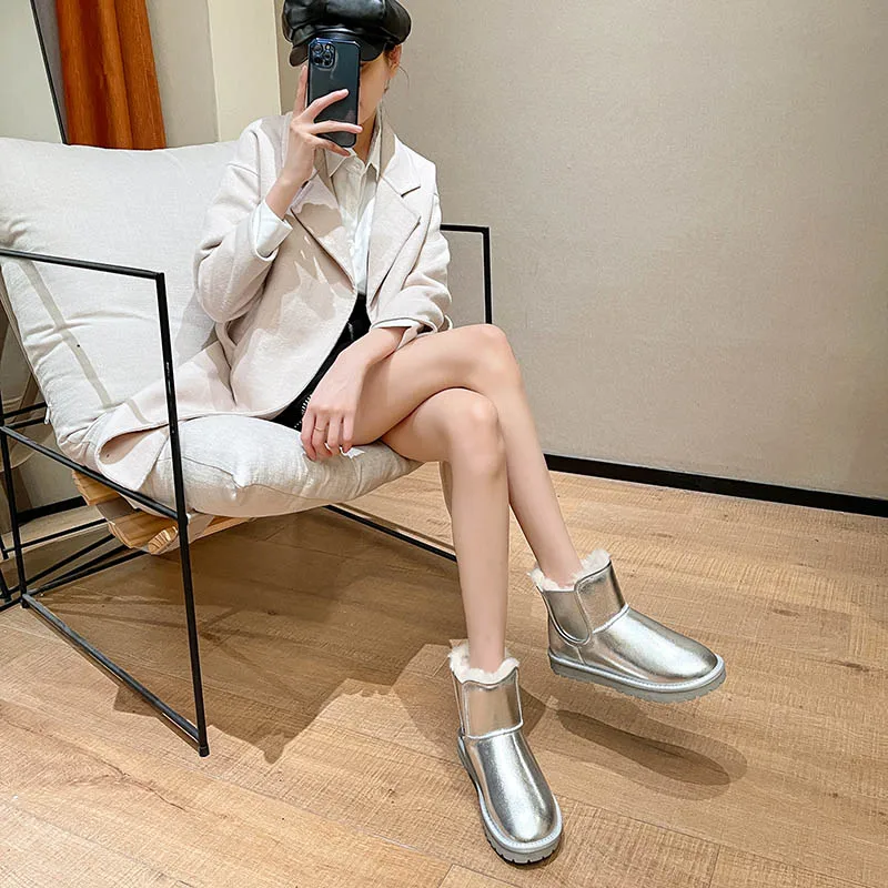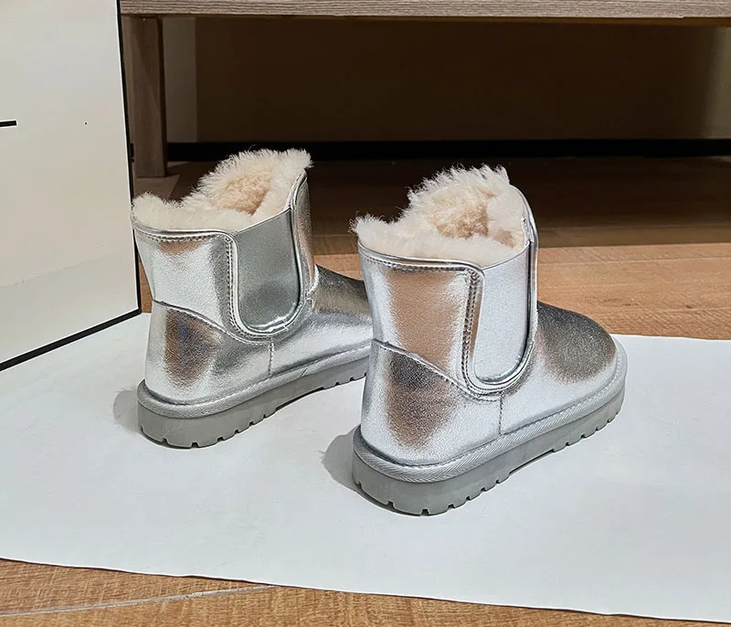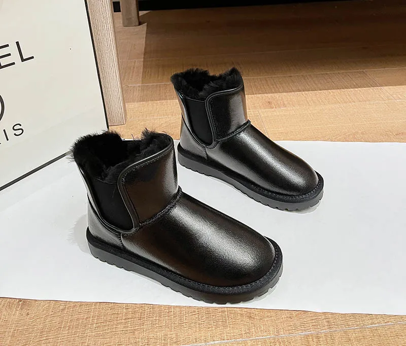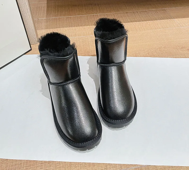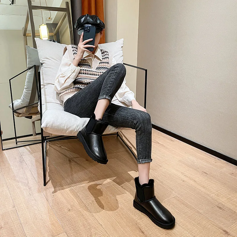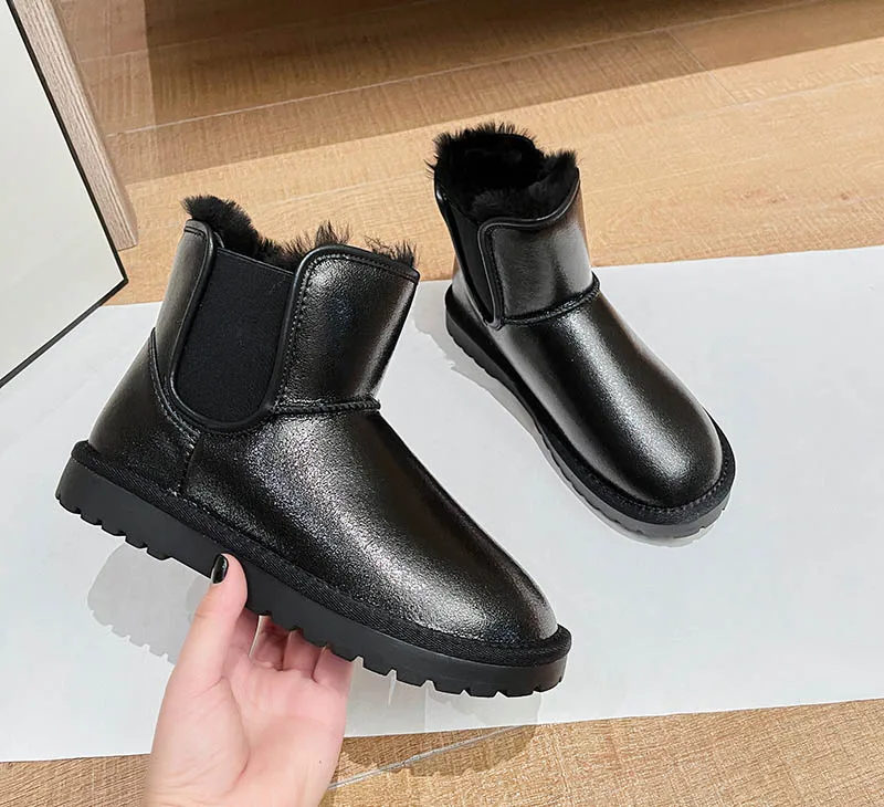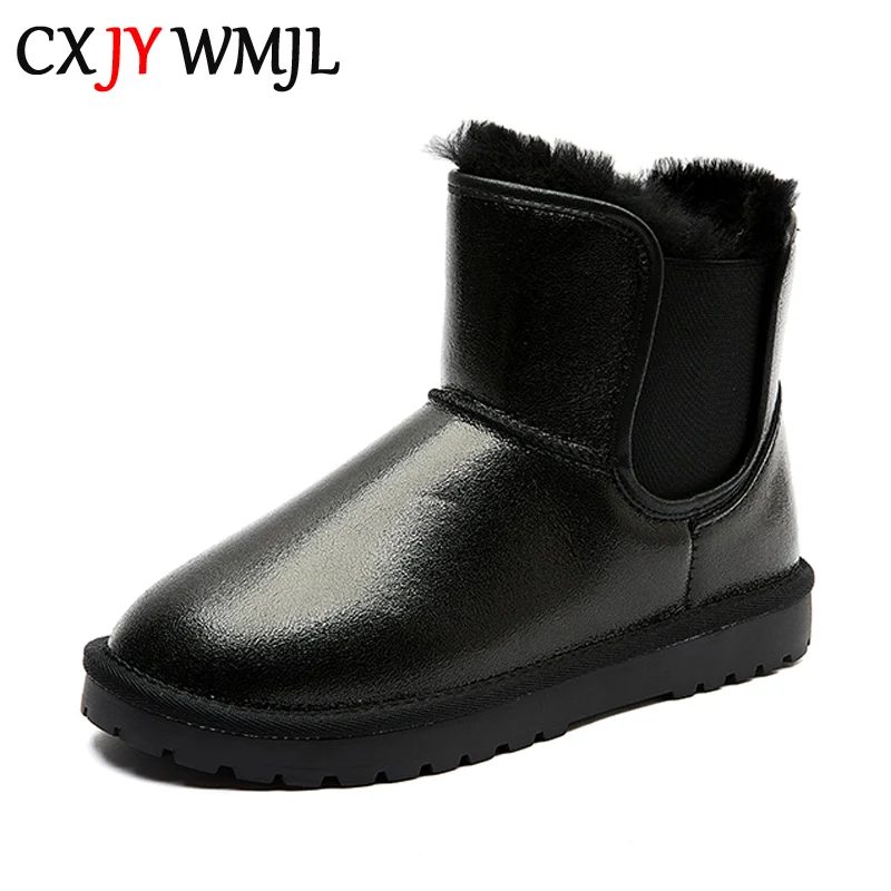 Женские зимние сапоги CXJYWMJL из натуральной кожи, зимние теплые сапоги с шерстяным эластичным ремешком, женские ботинки в британском стиле, обувь большого размера 42