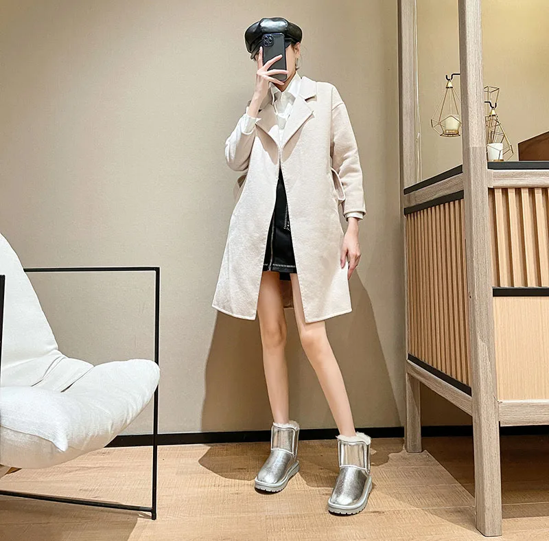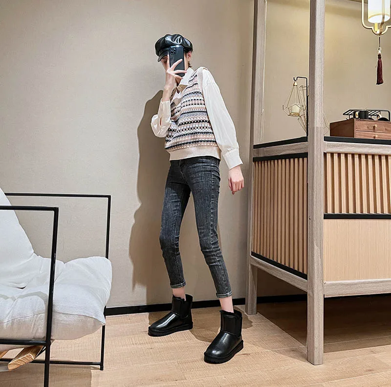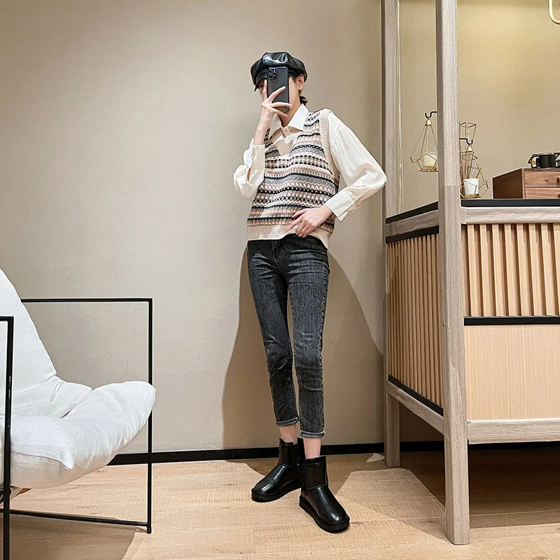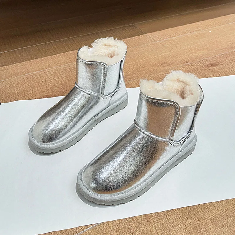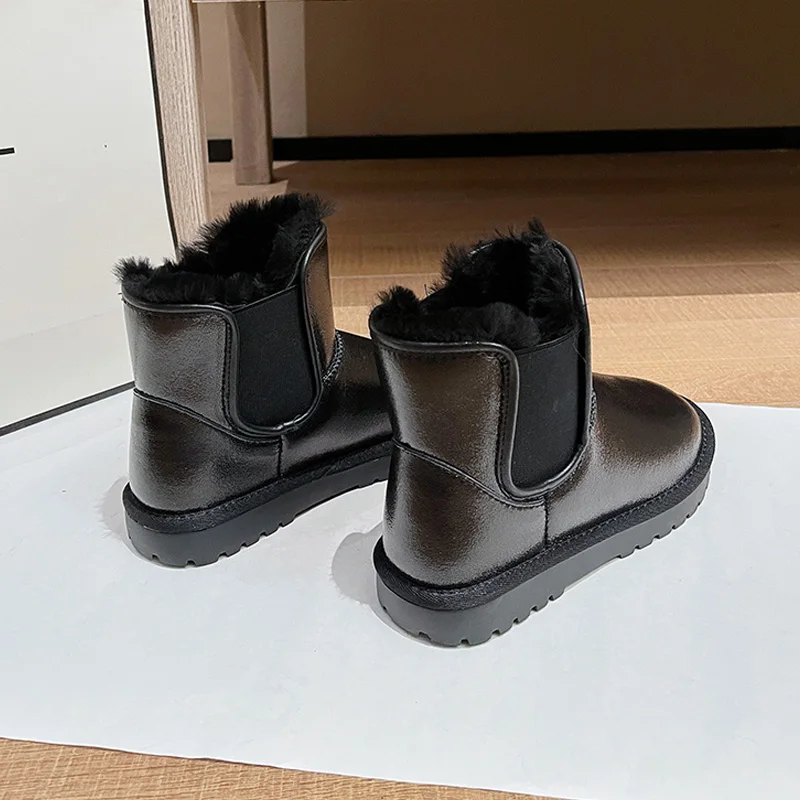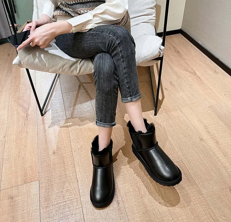Женские зимние сапоги CXJYWMJL из натуральной кожи, зимние теплые сапоги с шерстяным эластичным ремешком, женские ботинки в британском стиле, обувь большого размера 42