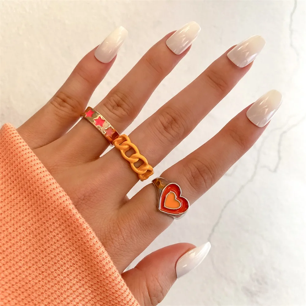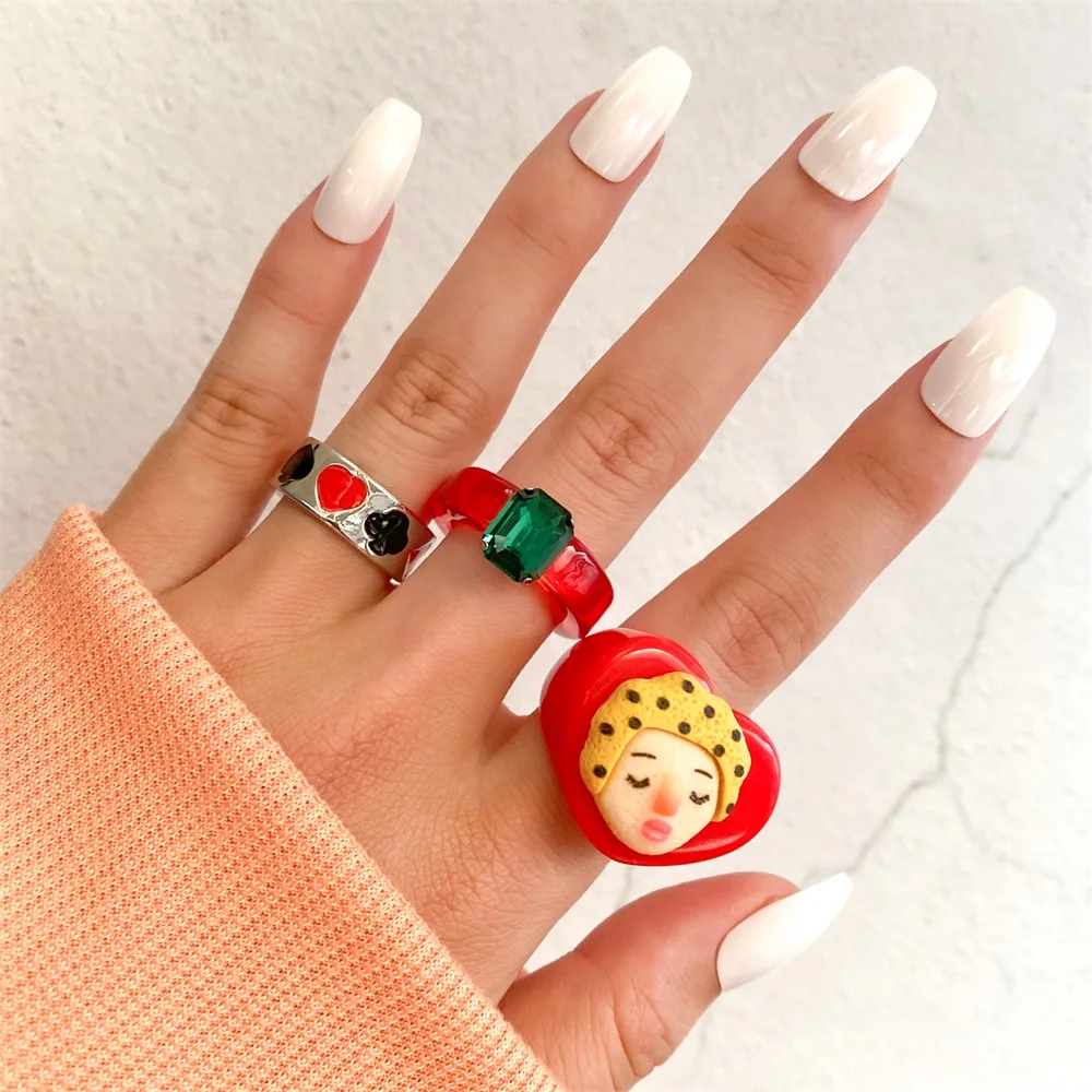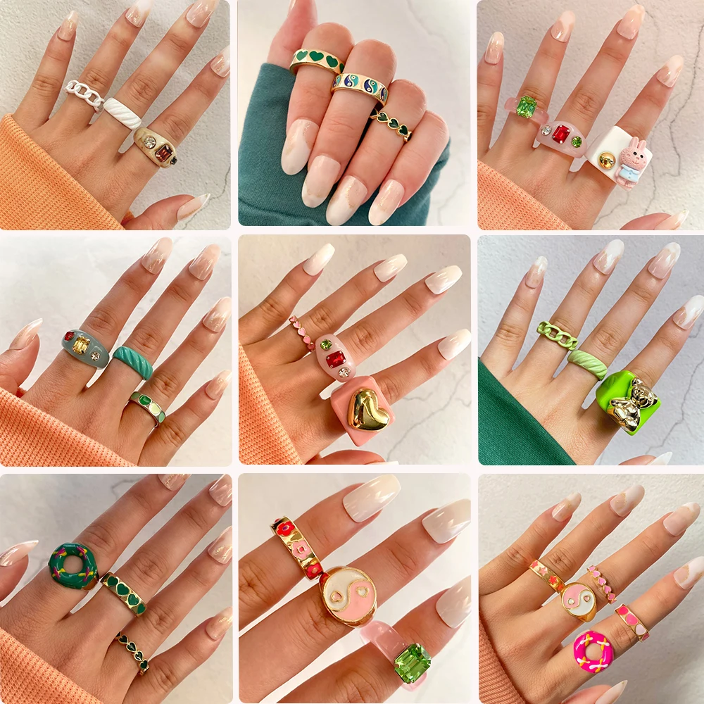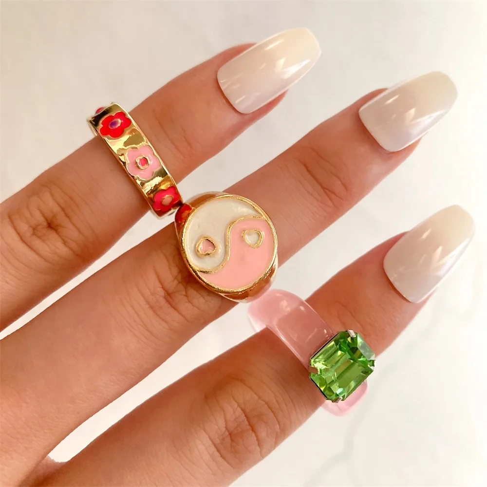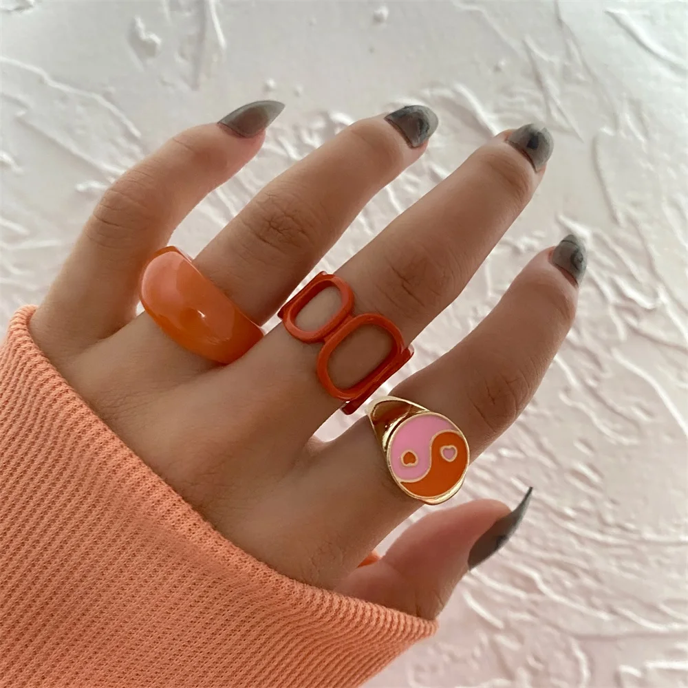 Набор женских колец IPARAM в винтажном стиле, комплект ювелирных украшений с геометрическим дизайном в форме сердца из акрила и смолы, Y2K, 2021