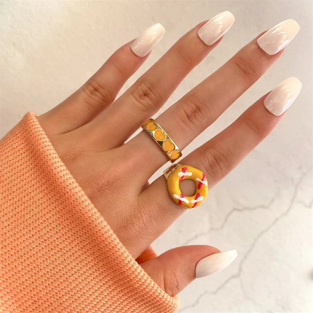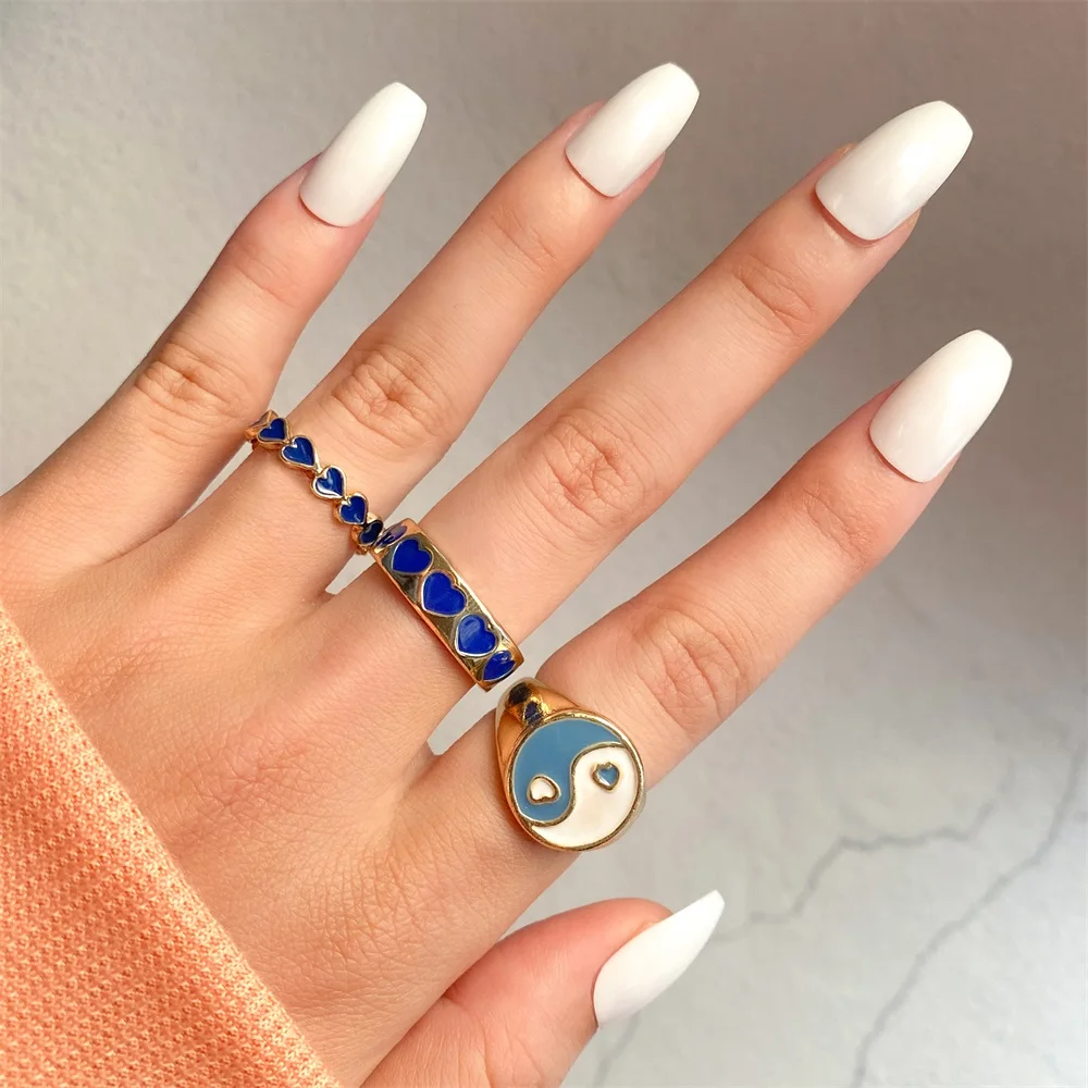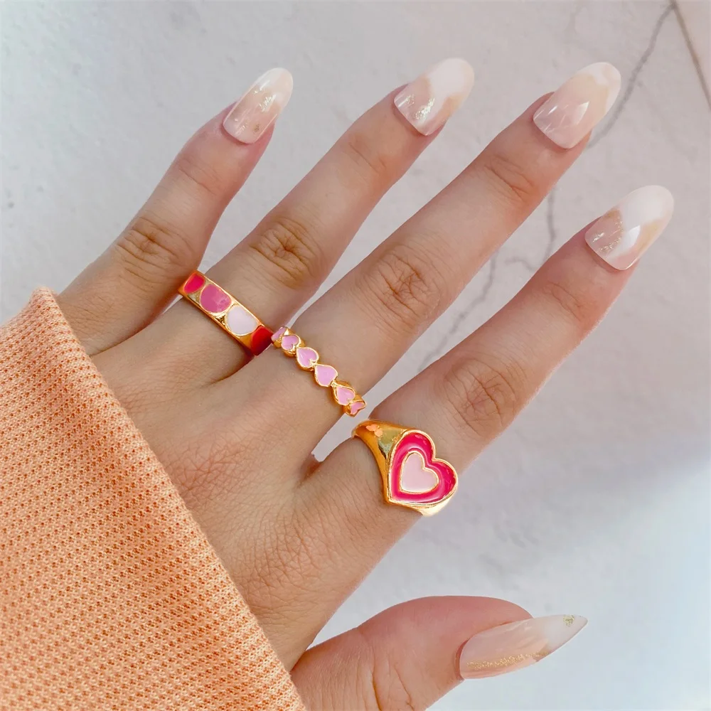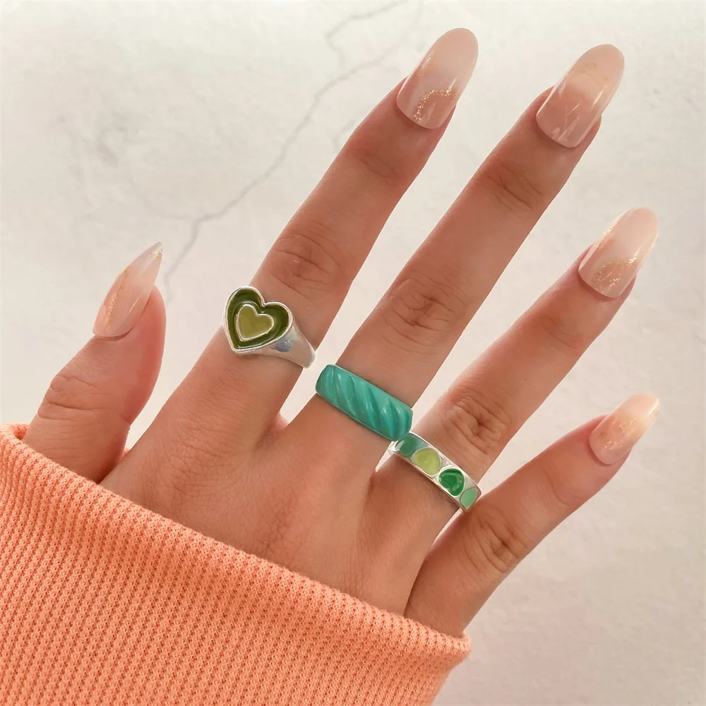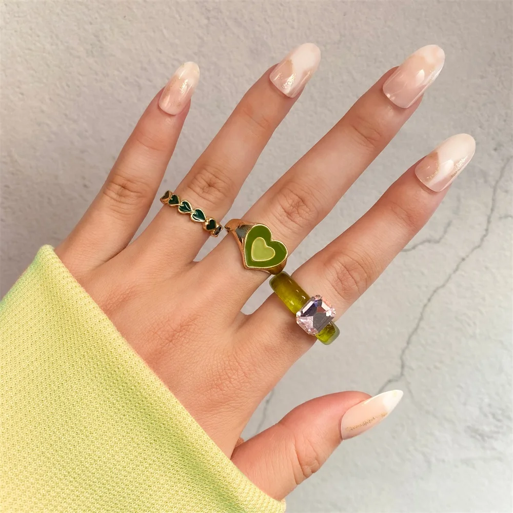 Набор женских колец IPARAM в винтажном стиле, комплект ювелирных украшений с геометрическим дизайном в форме сердца из акрила и смолы, Y2K, 2021