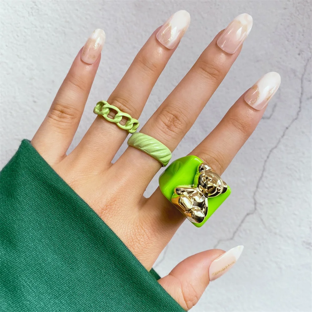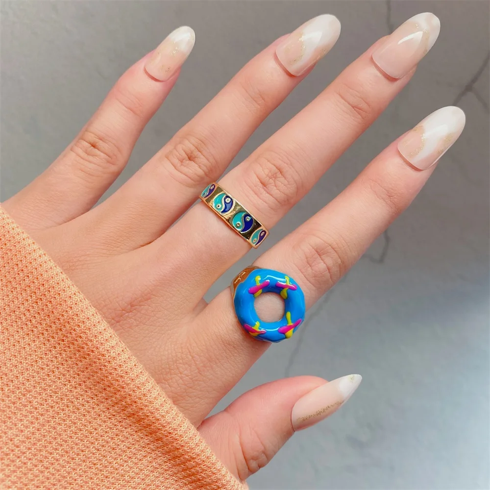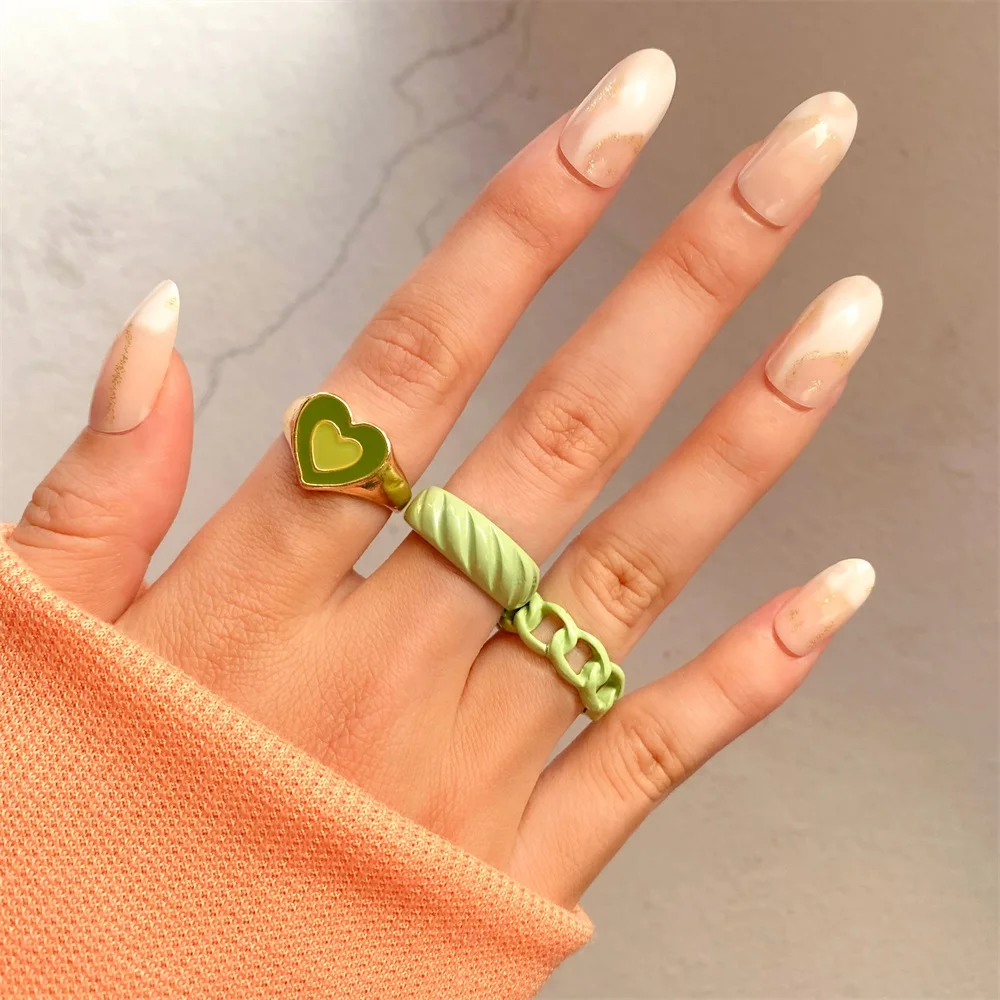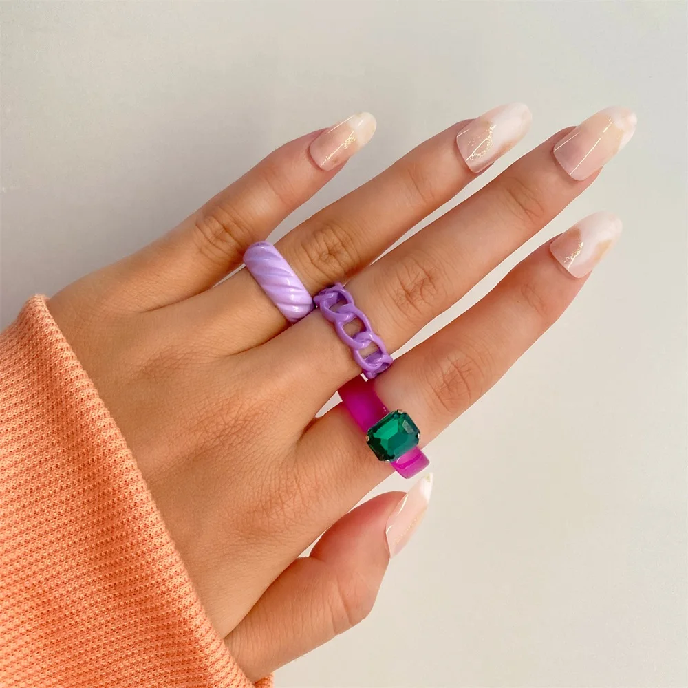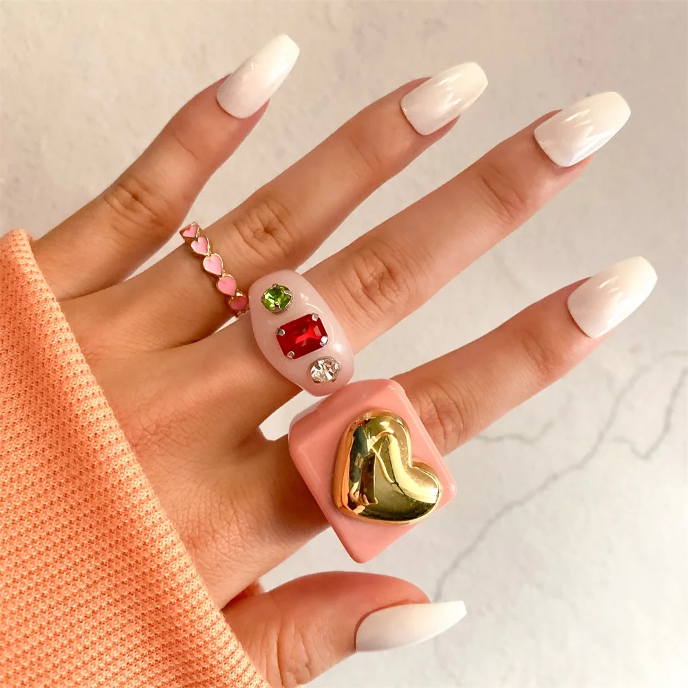 Набор женских колец IPARAM в винтажном стиле, комплект ювелирных украшений с геометрическим дизайном в форме сердца из акрила и смолы, Y2K, 2021