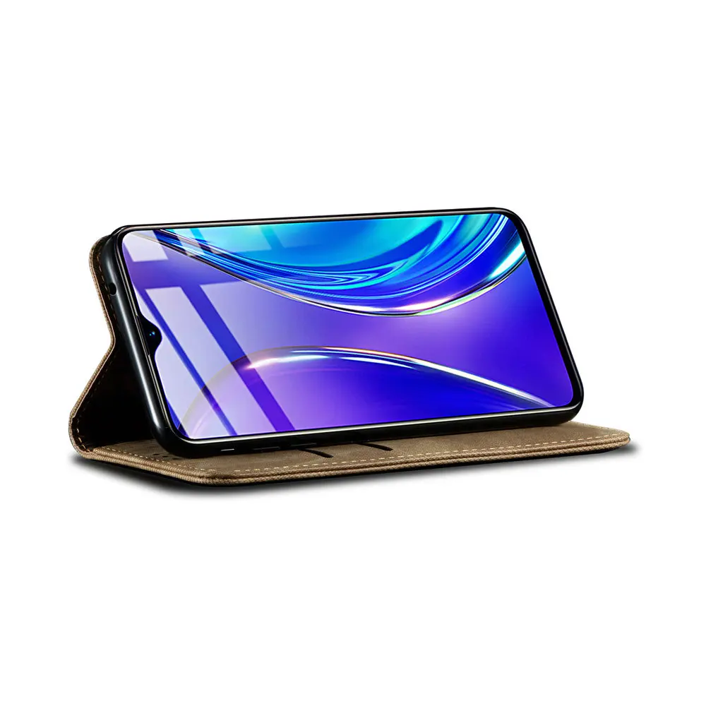 Чехол-бумажник из денима для Xiaomi Redmi Note 10 5G, Магнитный фли...