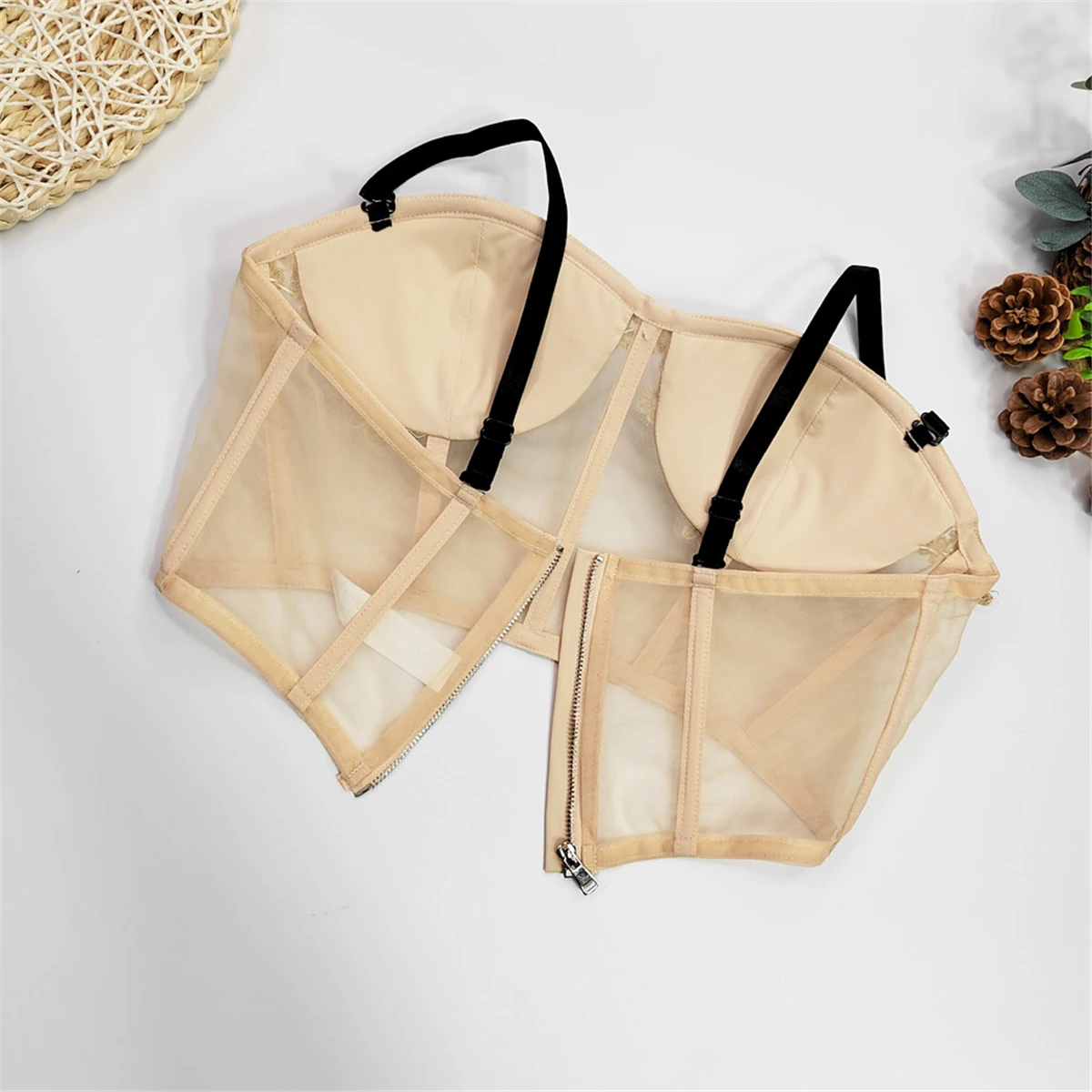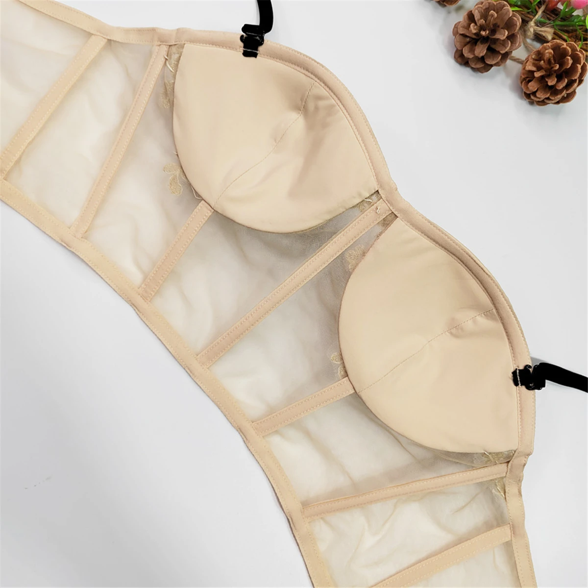 Укороченный топ, женский кружевной сетчатый прозрачный топ с вышивкой, сексуальный топ на бретельках с чашками, модное бюстье пуш-ап, женский ночной корсет, 2022
