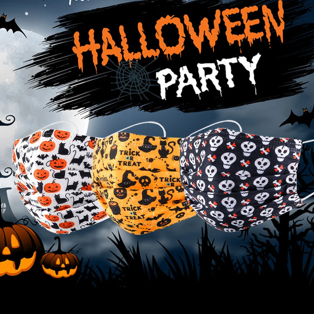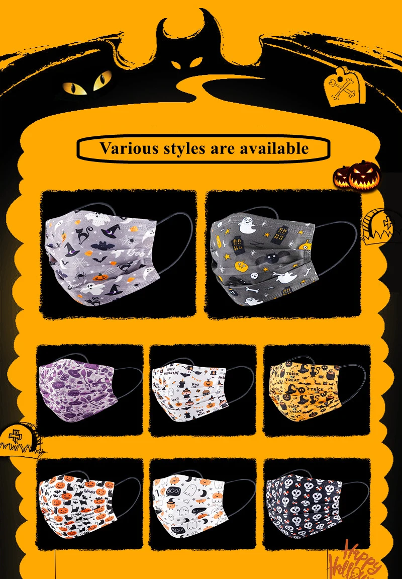 Одноразовая маска на Хэллоуин для взрослых, маска для лица с рисунком ведьмы, тыквы, черепа, черная Пылезащитная маска с принтом для вечерние НКИ, косплей, маскарадные маски, desechables