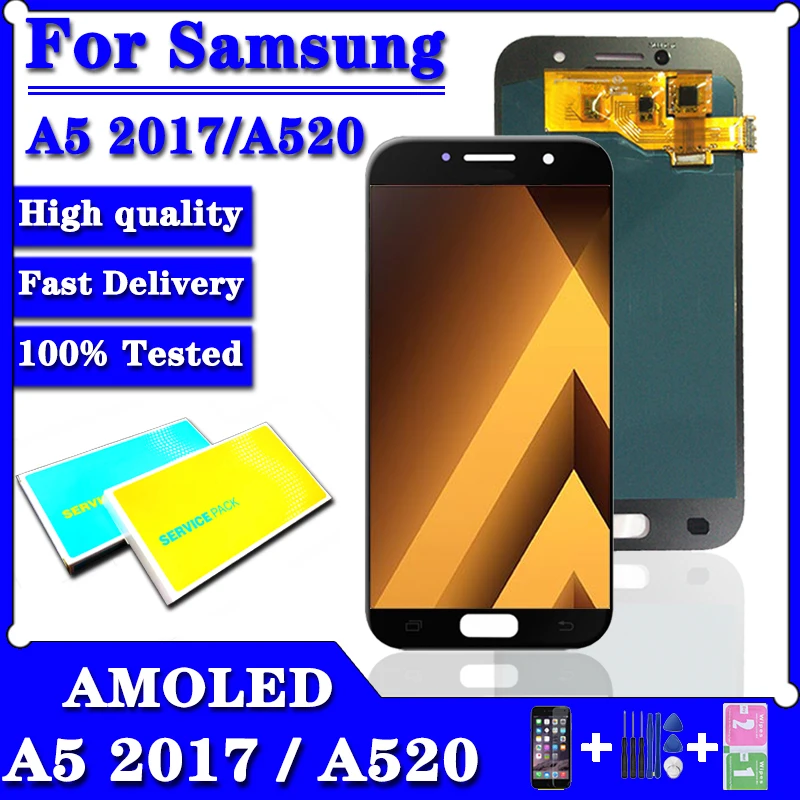 Super AMOLED 5,2 оригинальный A520 ЖК-дисплей для Samsung Galaxy A5 2017 A520F SM-A520F ЖК-дисплей с сенсорным экраном дигитайзер в сборе