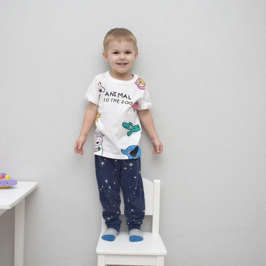 Так как не сезон, брала с запасом. На рост 125 см купили размер 7Т. Села даже сейчас неплохо, скорее всего маломерит 1-2 размера. Материал: практически не тянется, мягкий и приятный к телу. Состав: хлопок и немного спандекса. Принт: животные, нанесен краской. Крой: прямой. Качество не подвело, как обычно. Пошито аккуратно и ровно. Горловина эластичная сделана - ребенок оценит. Стиралась в машинке и внешний вид не стал хуже. Лучше гладить, но легко мнется. Доставка: месяц. Трек: отслеживается.
