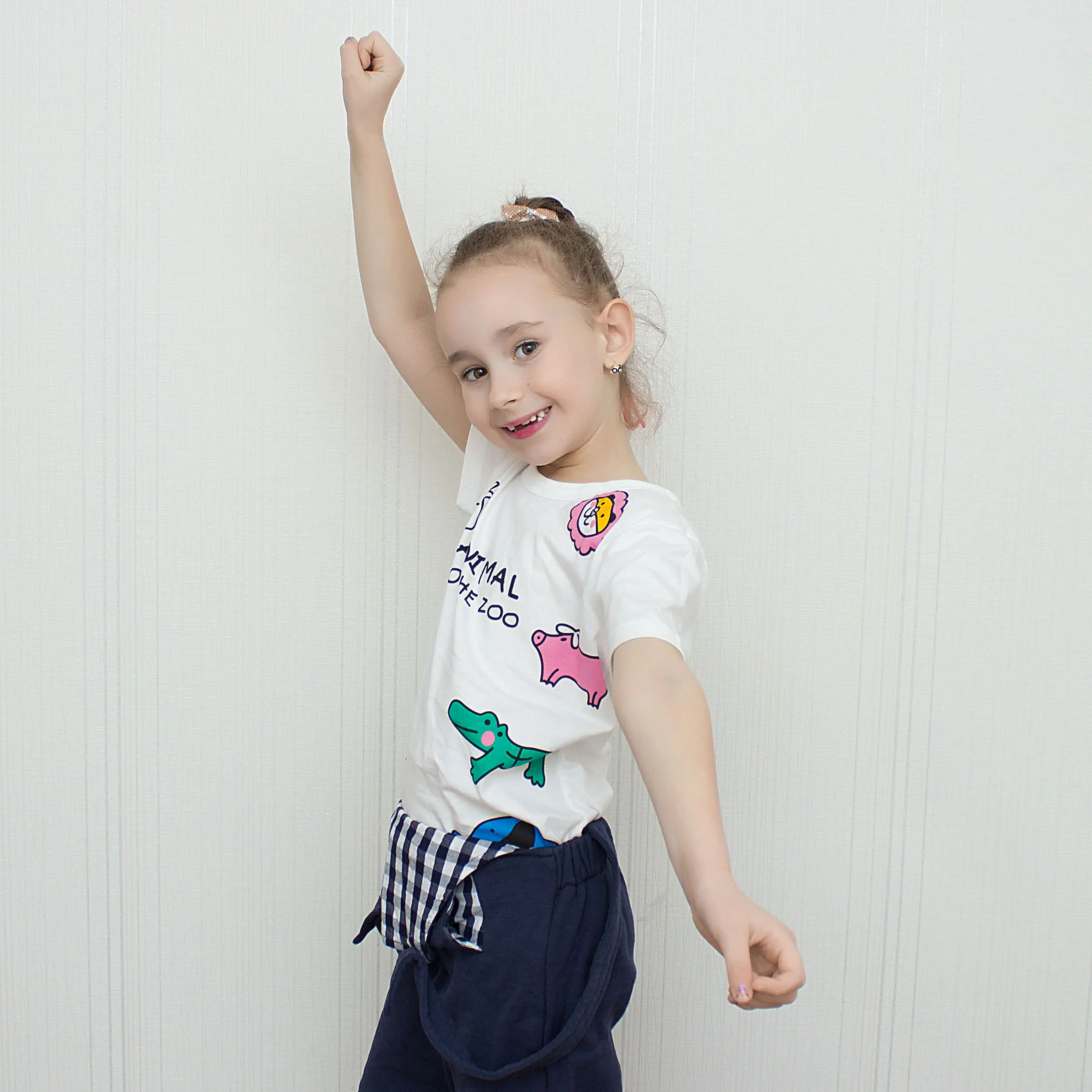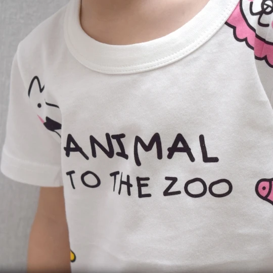 Хлопковая Детская футболка с изображением животных в зоопарке, топы для мальчиков и девочек, детская одежда с мультяшным рисунком, футболки с коротким рукавом, 01050