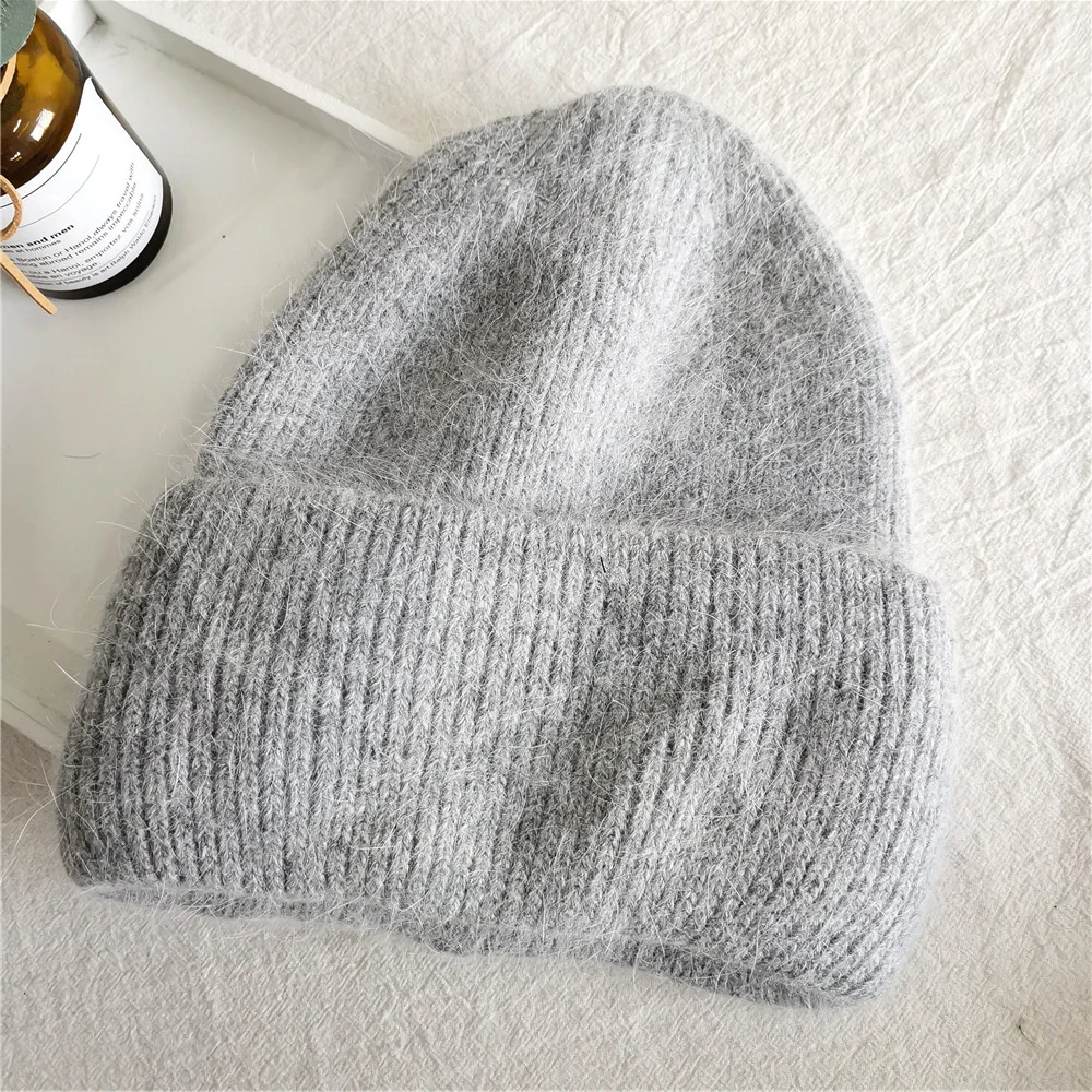 Зимняя шапка, женская, теплая, вязаная шапка из Ангорского кроличье...