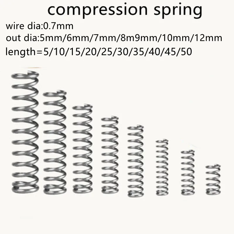 10 шт. 0,7 мм компрессионная пружина внешний диаметр 5 мм6 мм7 мм8 мм9 мм10 мм12 мм нержавеющая сталь микро маленькая компрессионная пружина