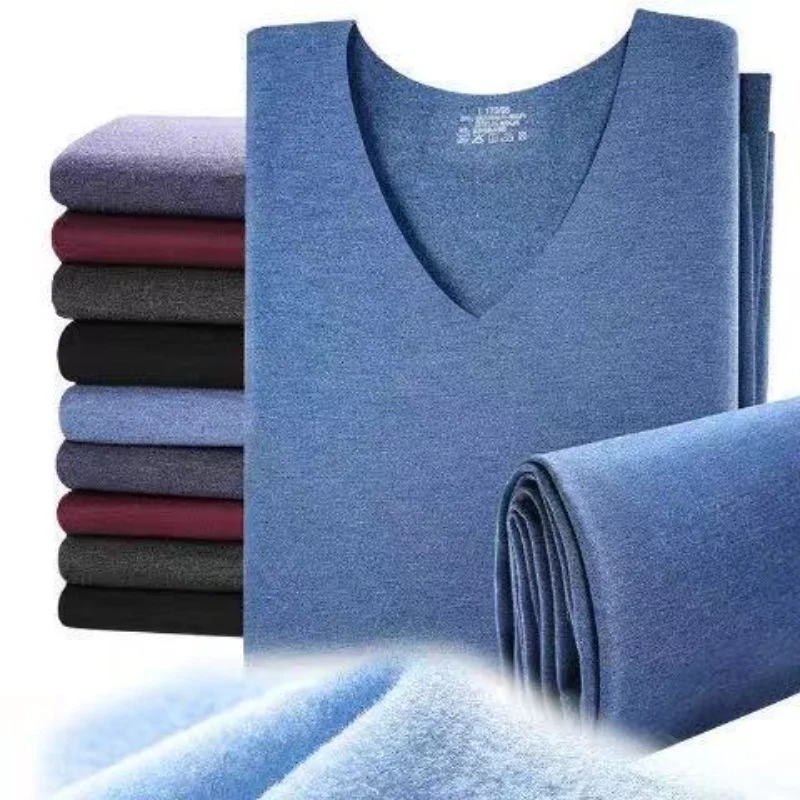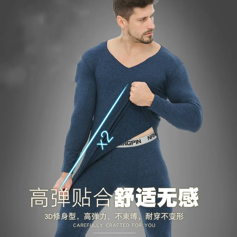 Мужское термобелье с V-образным вырезом, бесшовное бархатное длинно...