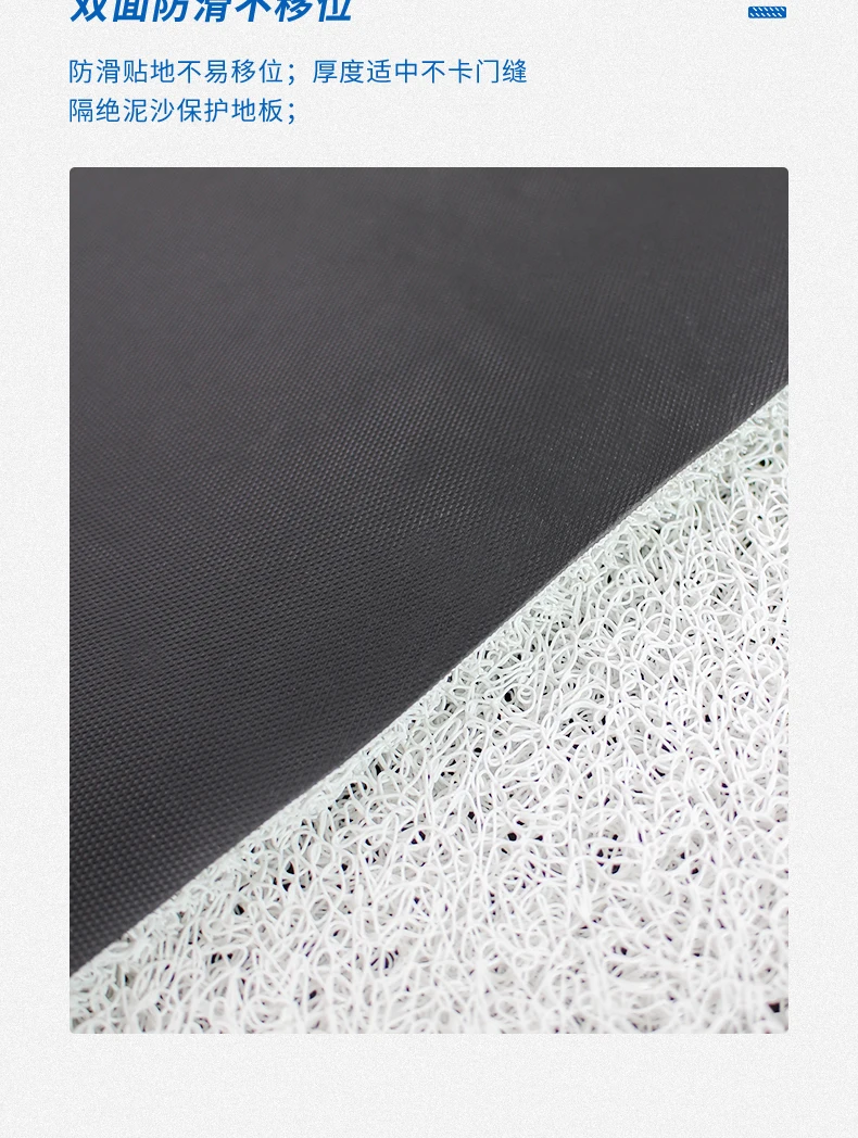 Коврик из ПВХ с шелковой петлей может предотвратить скольжение и защитить вашу безопасность, он может поглощать влагу из вашей обуви, чтобы сделать пол чистым и сухим, а также очистить от пыли, грязи, снега, И т. д.Его можно свободно разрезать на любые формы, которые вы хотите, и он подходит для внутреннего и наружного входа, прихожей, гостиной, спальни, ванной комнаты и т. д.Толщина коврика составляет около 8 мм, он может полностью лежать на полу и не препятствует открыванию и закрытию двери.Когда коврик заполнен частицами грязи, вы можете просто очистить его с помощью пылесоса или использовать водяной шланг в краску, а затем дать ему высохнуть на воздухе перед следующим использованием.