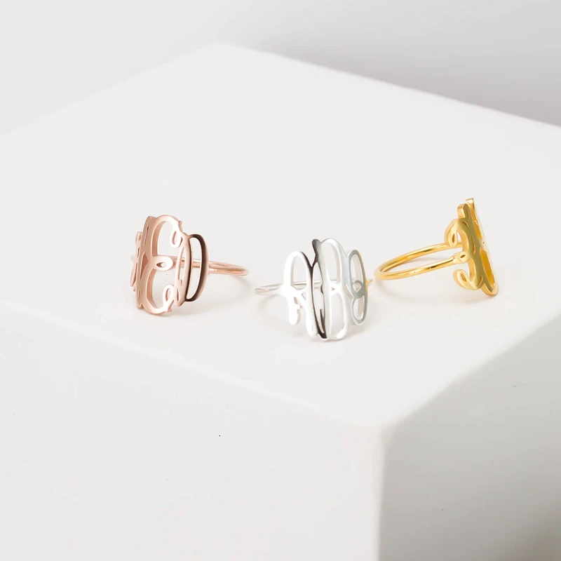 Индивидуальная индивидуальная монограмма с 3 инициалами, кольцо с и...