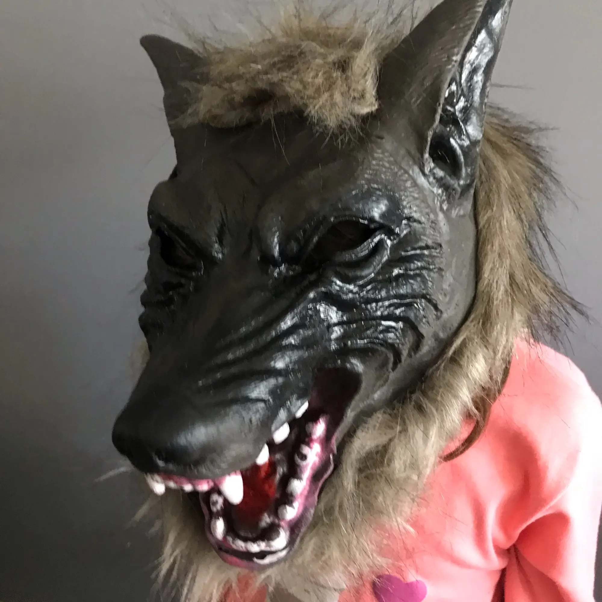 Латексная резиновая маска для волос в виде головы волка на Хэллоуин, искусственное украшение для вечерние