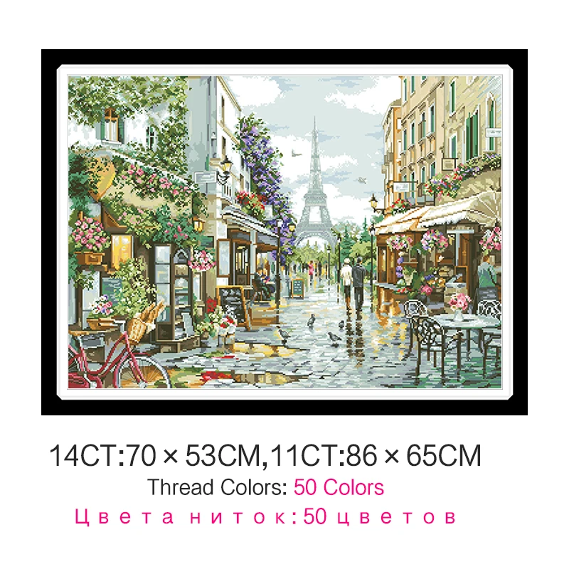 Вышивка крестиком с принтом "Париж после дождя", 11CT, 14CT