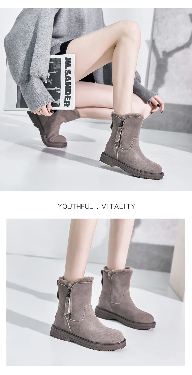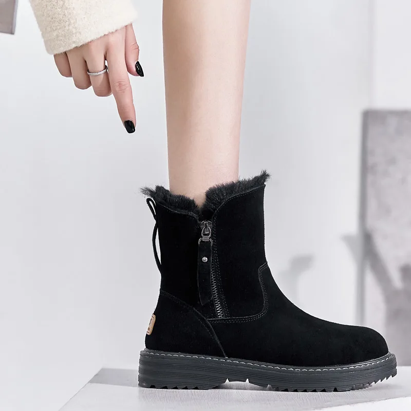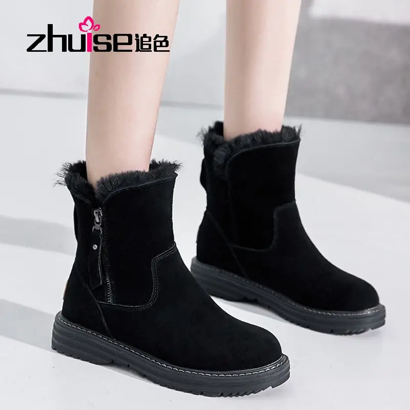Ботинки женские кожаные, на молнии, с хлопковой подкладкой, Осень-зима 2021