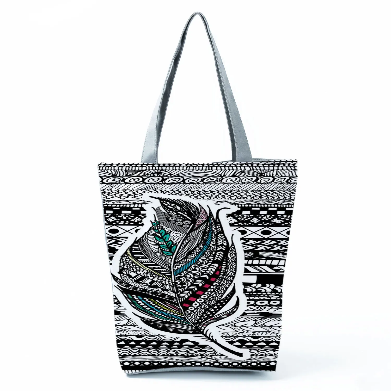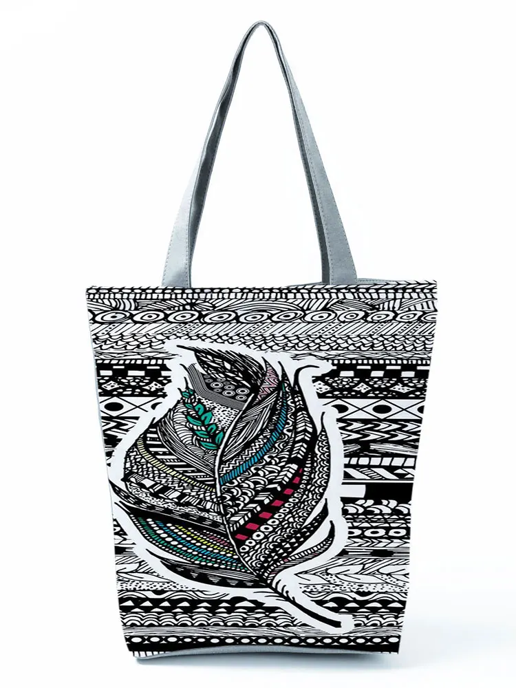 Сумка женская многоразовая с перьями, Классическая вместительная сумочка для покупок с геометрическим принтом, тоут на плечо в стиле ретро, цвет черный