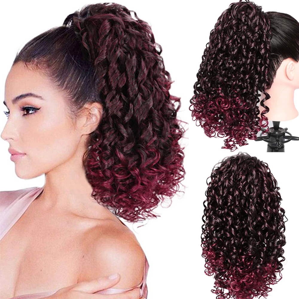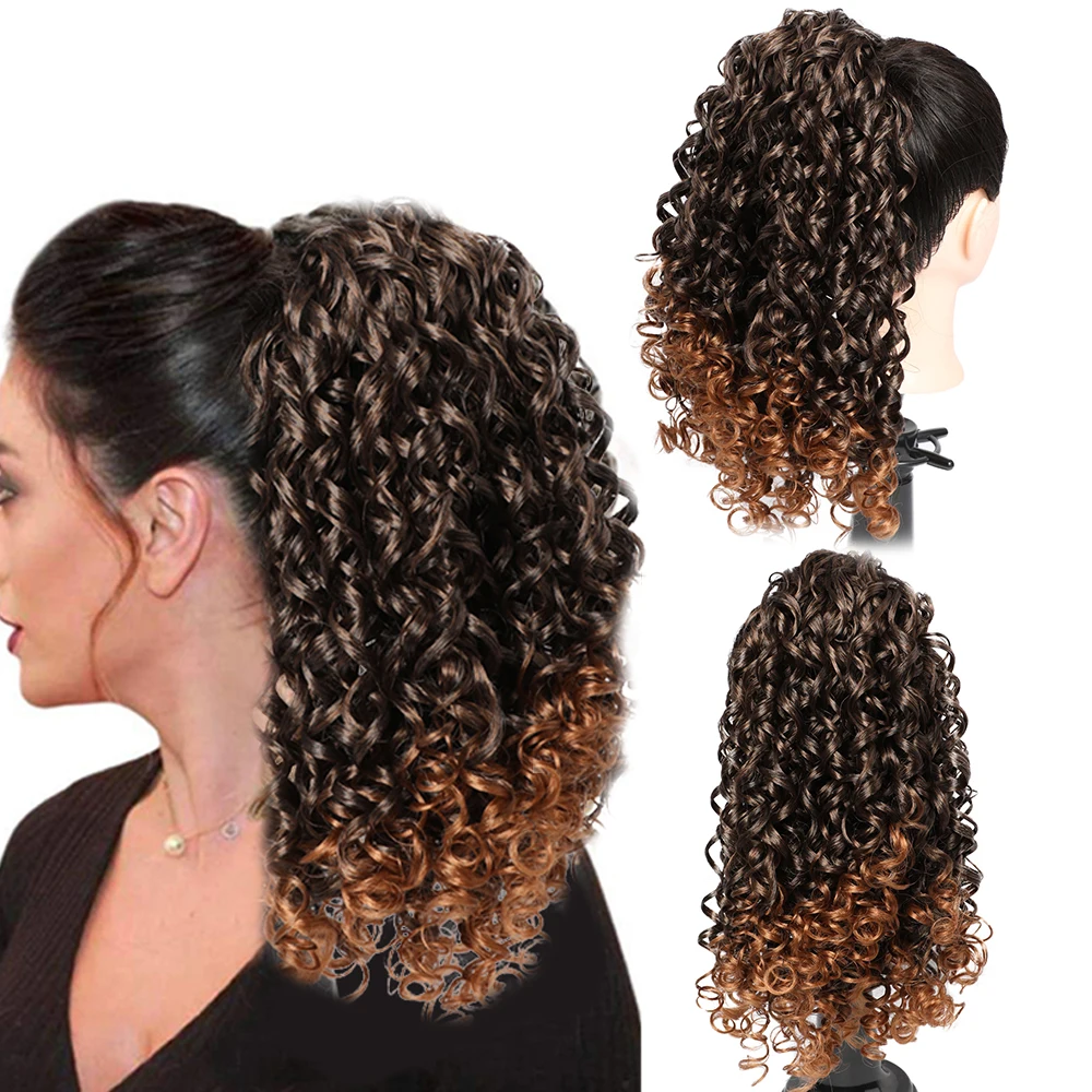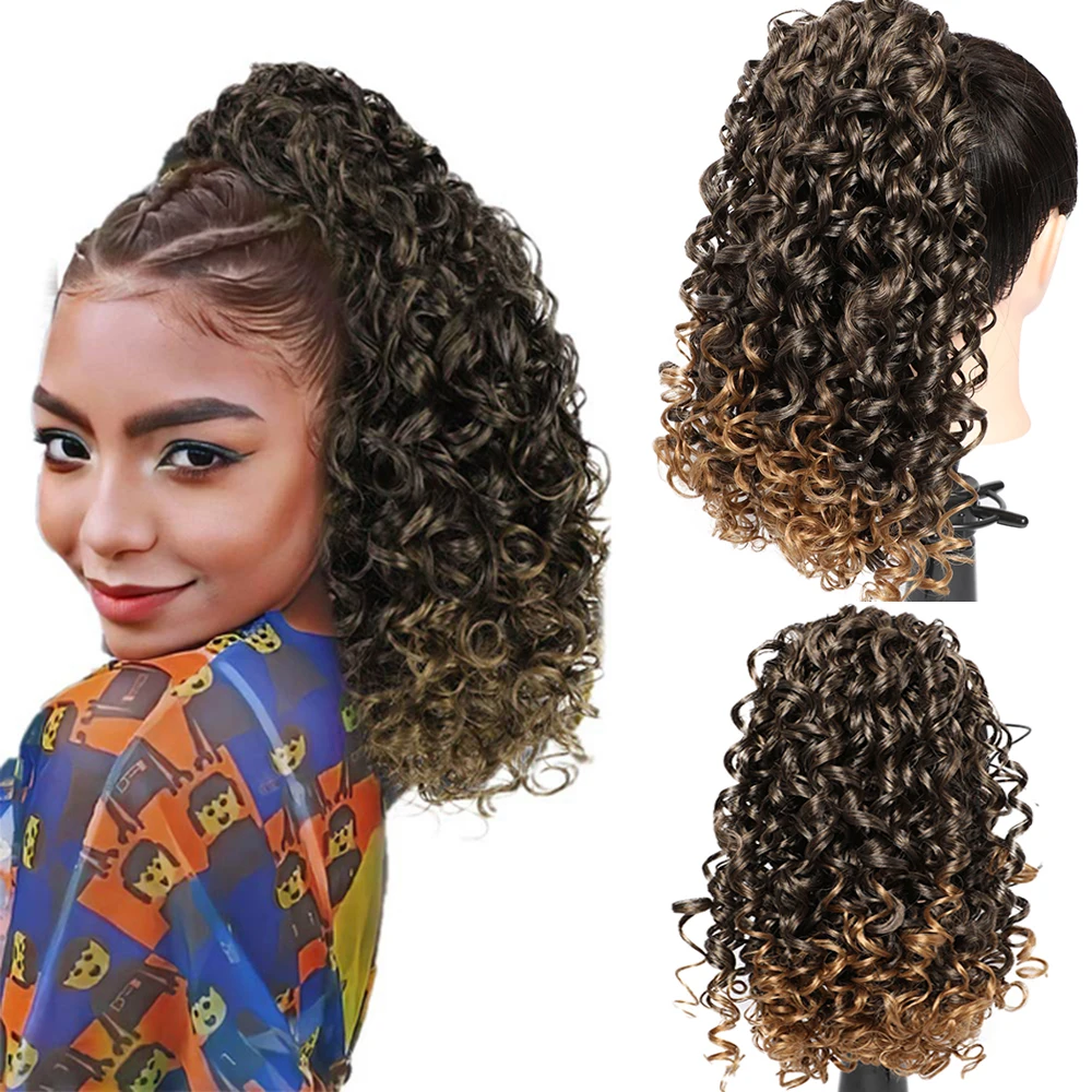 HF кулиска конский хвост афро кудрявый конский хвост для черных женщин синтетические заколки в Джерри кудри афро фонарик хвост