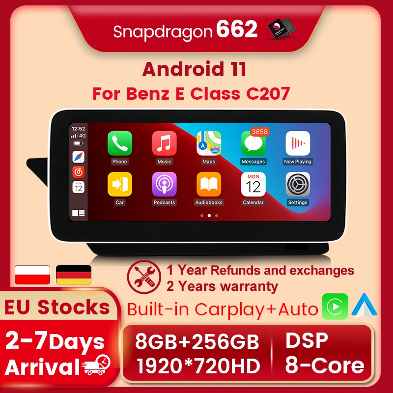 Автомобильный мультимедийный плеер Qualcomm Android 11 8 + 256G GPS-навигация BT для Mercedes Benz E Class Coupe 10-12 экран W207 A207 C207