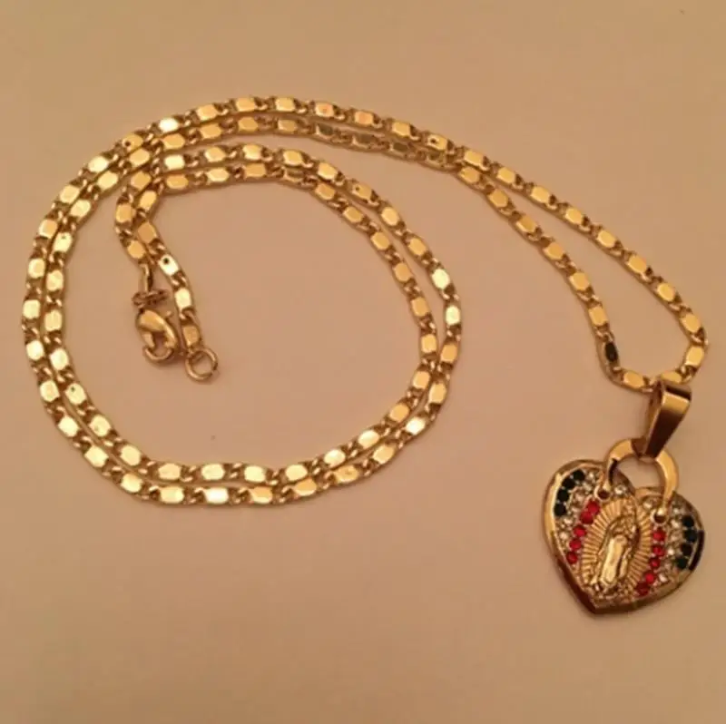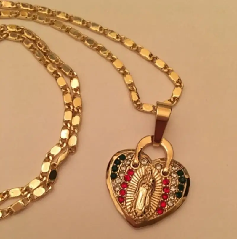 Кулон из разноцветного циркония с сердцем нашей леди Гуадалупе, женское ожерелье, ювелирные изделия в подарок