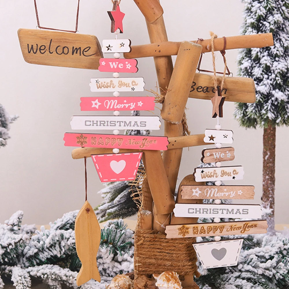 Деревянная настенная подвеска в виде елки с Новым годом, украшение ...