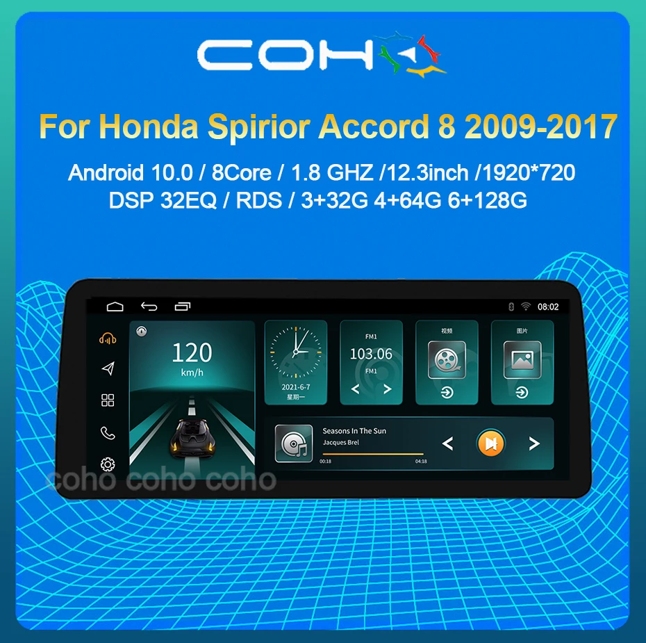 Автомобильный радиоприемник COHO, 12,3 дюйма, Android 10, для Honda Spirior Accord 8 2009-2013, видеоплеер, автомобильное радио, мультимедиа, GPS-навигация