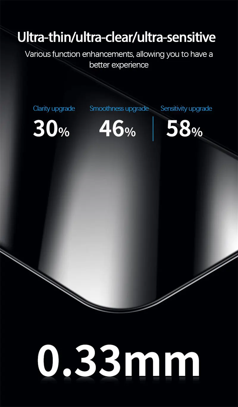 Высокая прозрачность обеспечивает четкое изображение высокой четкости. Гидрофобное олеофобное покрытие экрана защищает от пота и остатков масла от отпечатков пальцев.