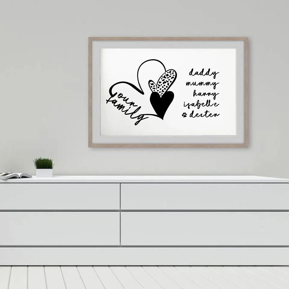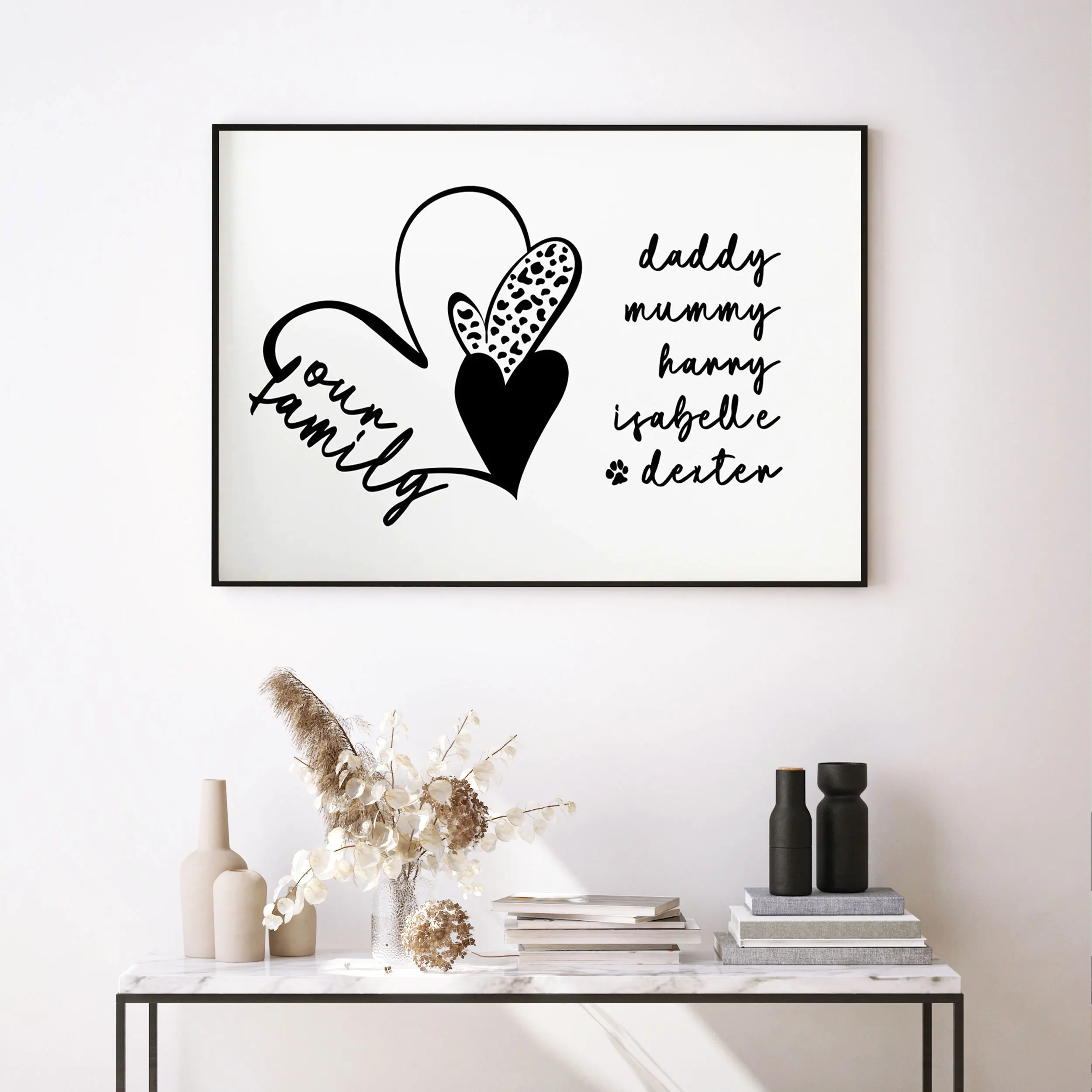 Минималистичный плакат, черный, белый холст, скандинавский стиль, наша семья, сердце, лапа питомца, Современная цитата, Художественная печать, Настенная картина, гостиная, домашний декор