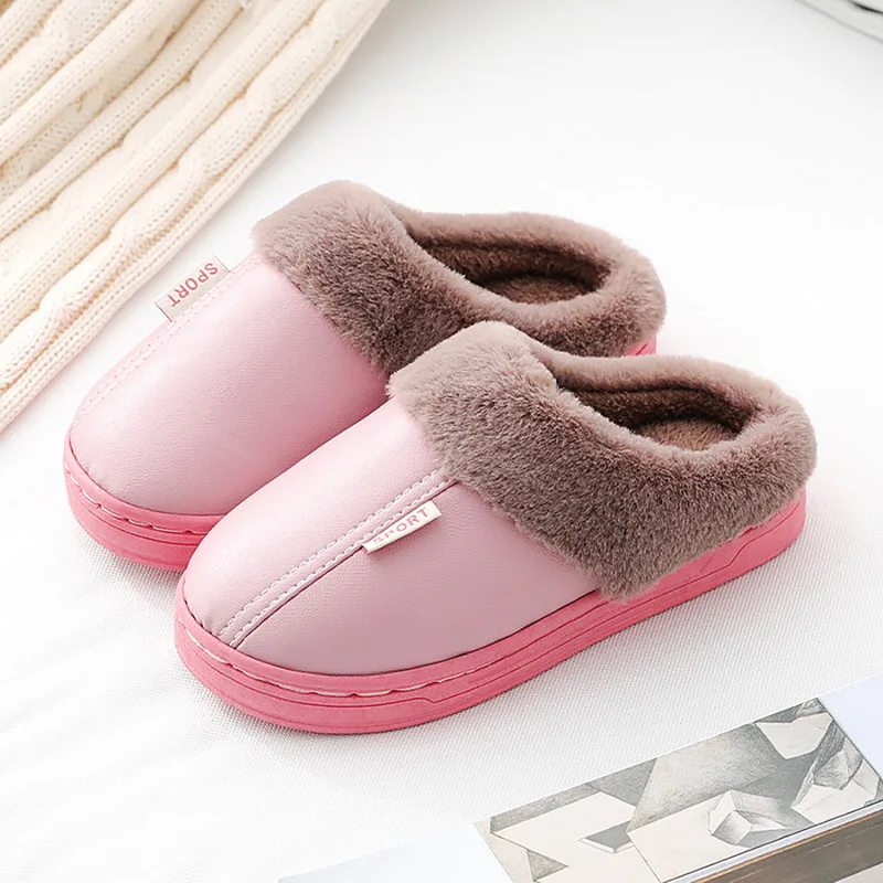 Тапочки детские меховые, хлопковые, водонепроницаемые, зимние, 2021