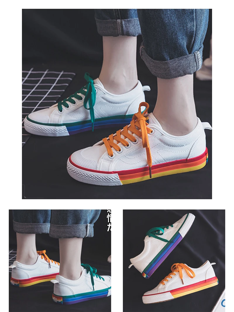 Кеды женские радужные, Вулканизированная подошва, плоская подошва, ...