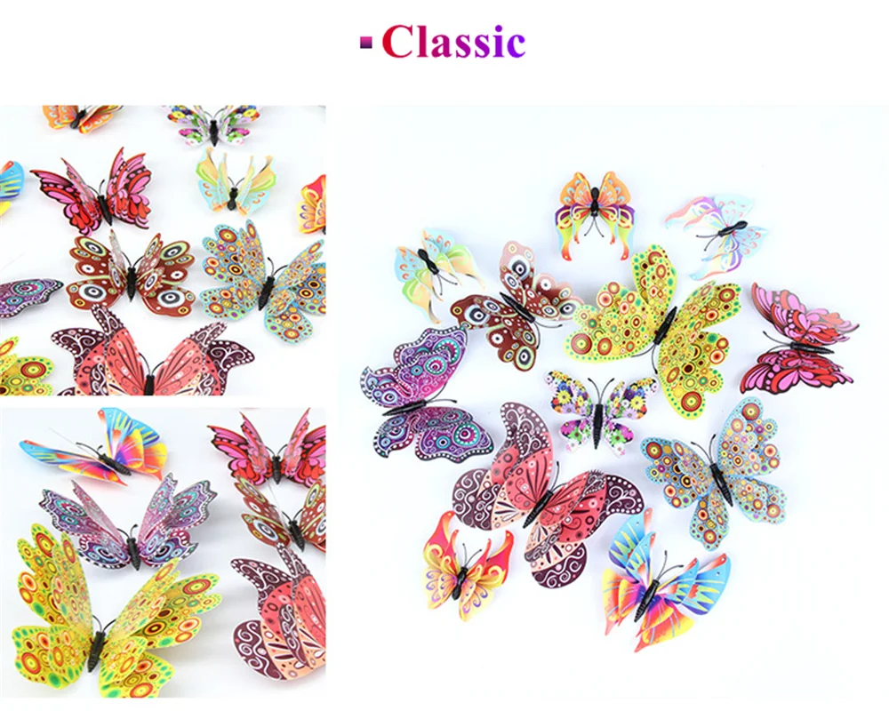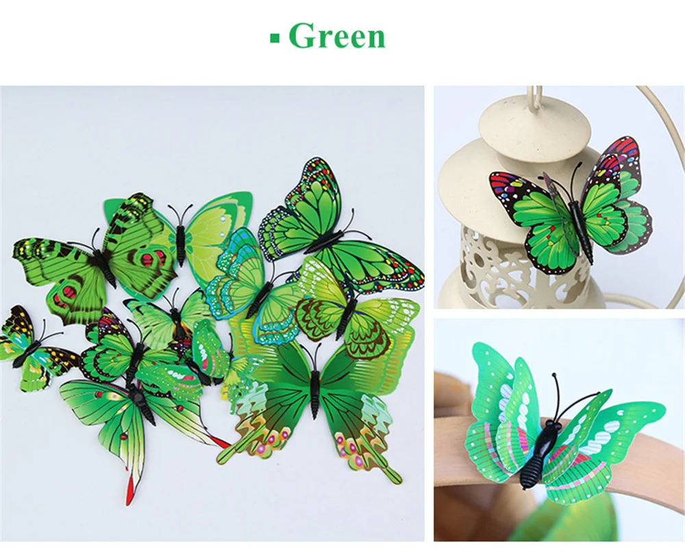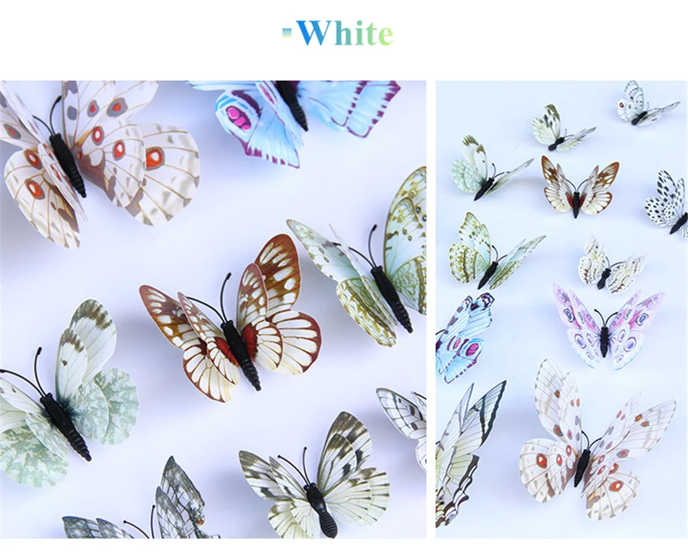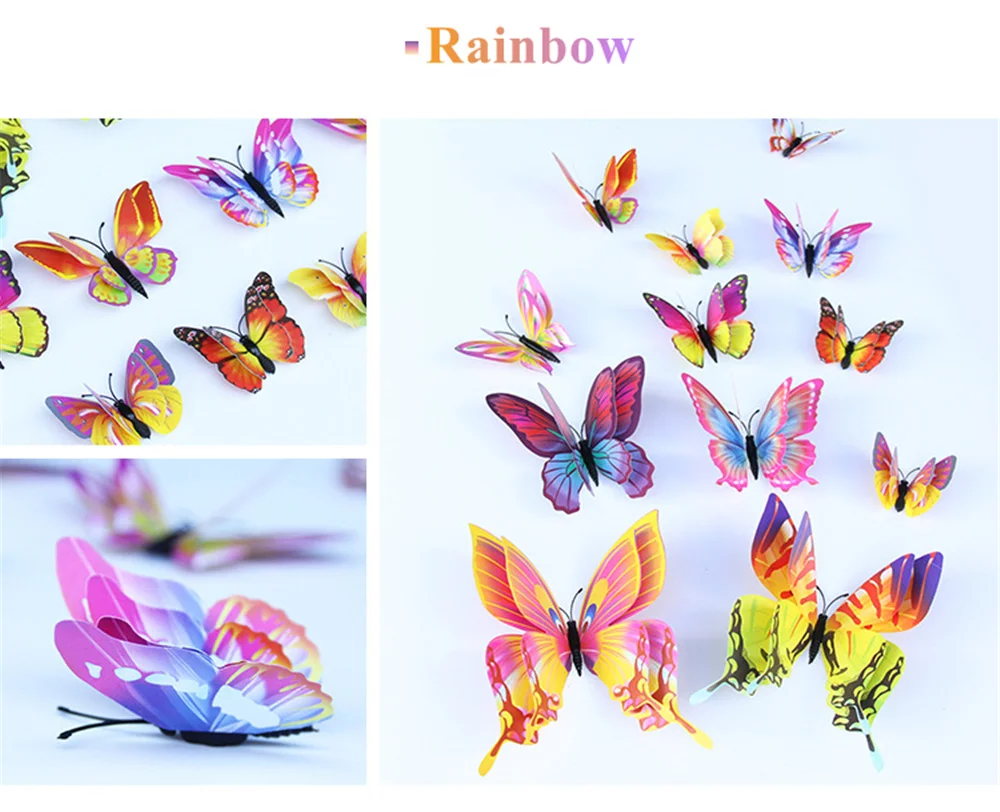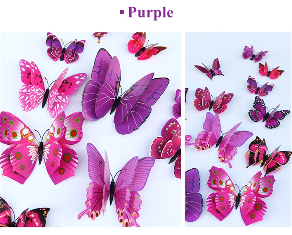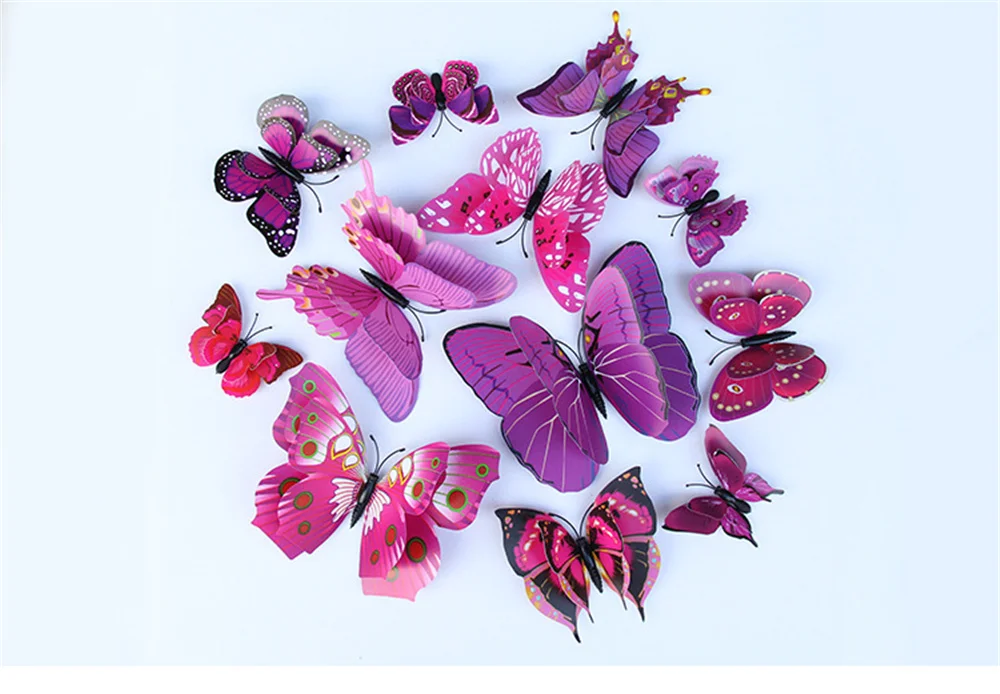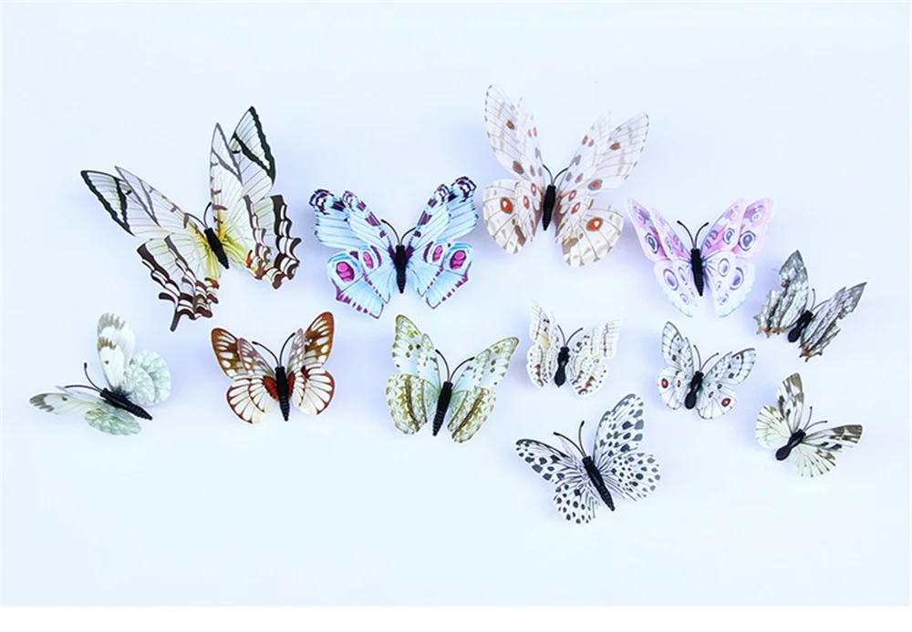 12 шт. двухслойные 3D наклейки на стену в виде бабочек для свадебной вечеринки, наклейки на холодильник в виде бабочек, украшение для дома