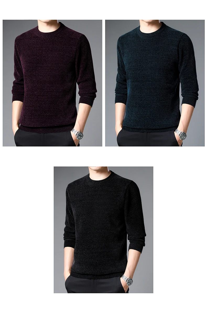 Мужской Мягкий трикотажный пуловер, повседневный приталенный теплый...